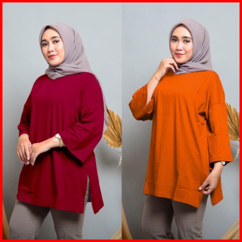 Kaos Basic Oversized Kaos Polos Nonbusui Hijab Friendly Lengan 7 8