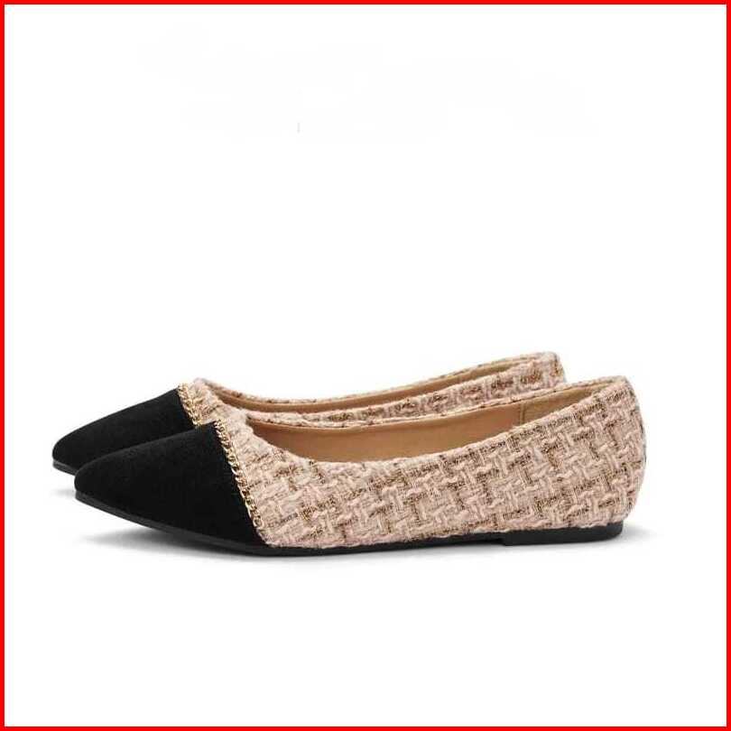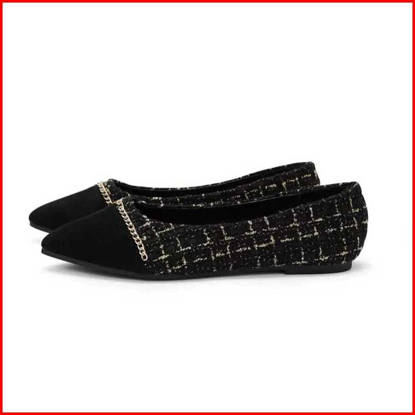Flatshoes Balet Wanita Kampas Rante Full Busa Sol Karet Trendy