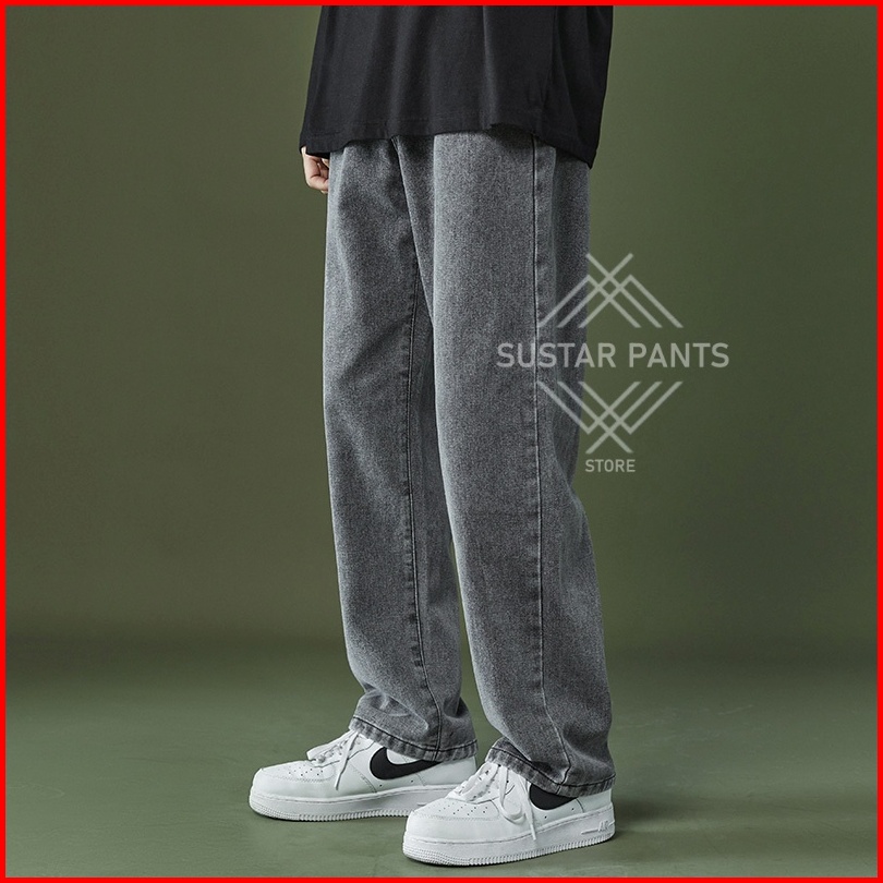 Celana Jeans Pria Baggy Pants Korean Style Oversize Loose Blue Jeans Straight Kulot Boyfriend Jeans Longgar Celana Cowo