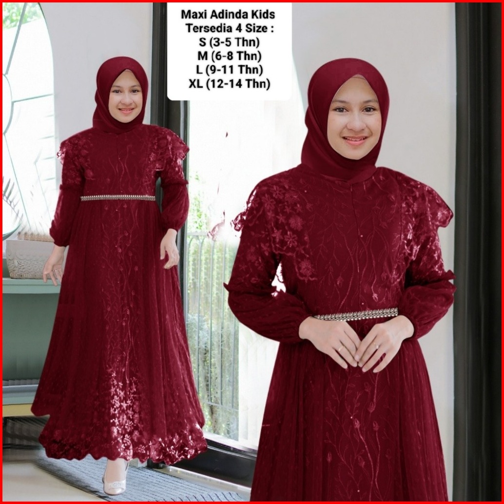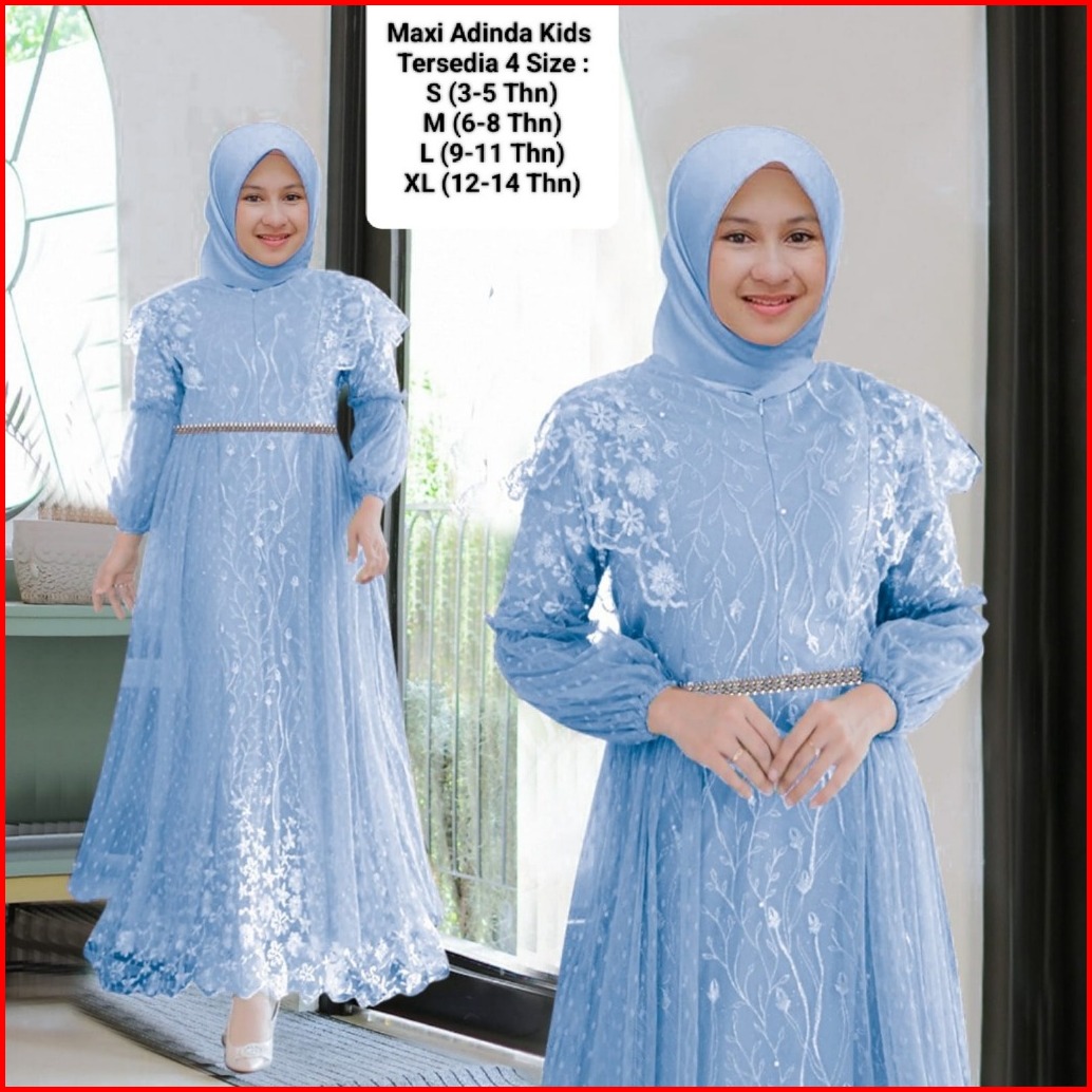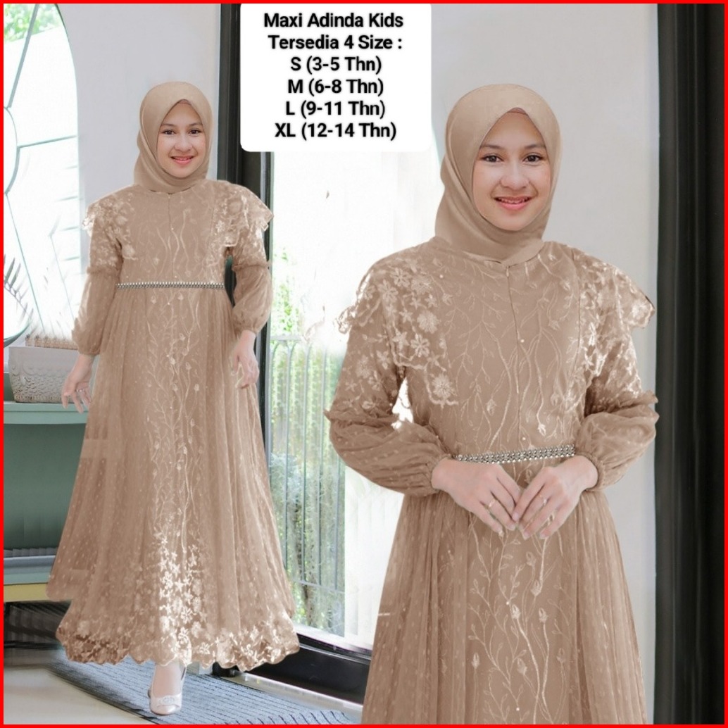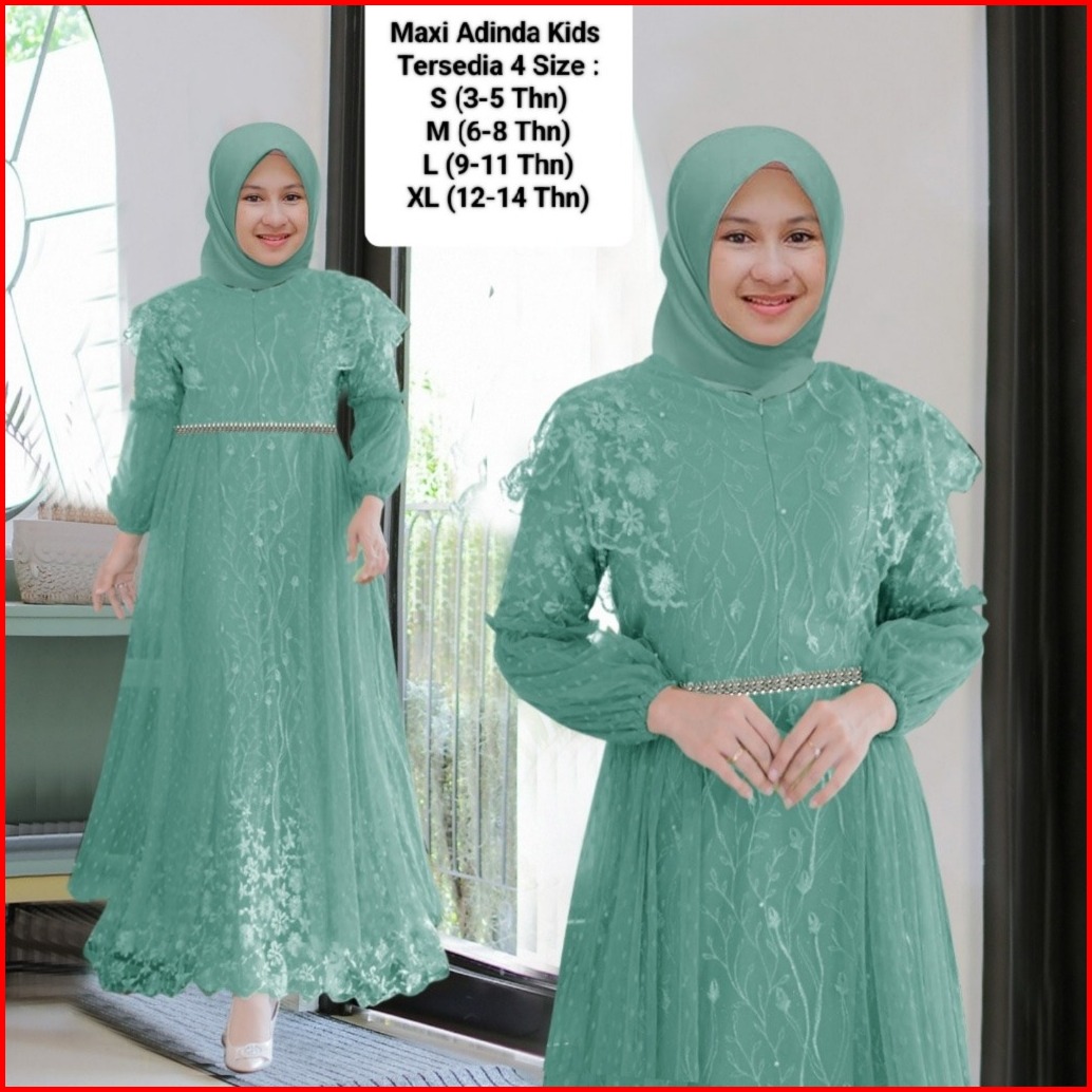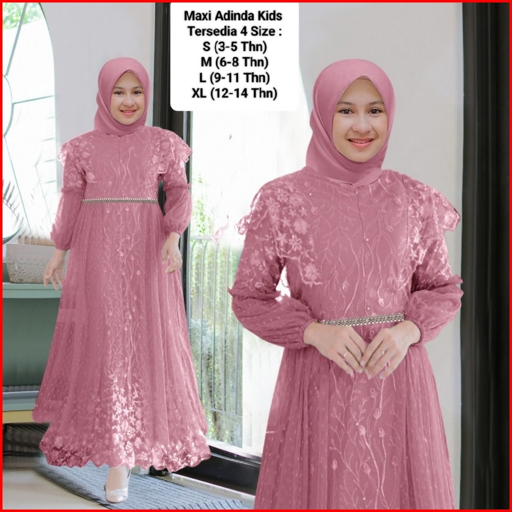 Pakaian Muslim Anak Perempuan Remaja Abg Terbaru Maxi Adinda Kids 3-14 Tahun Matt Full Brokatmutiara