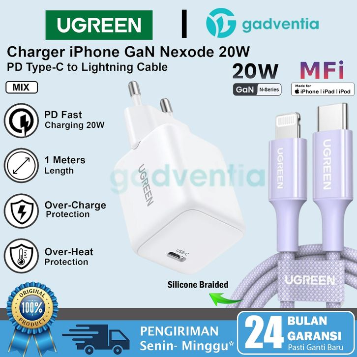 [Mall] CHARGER UGREEN FOR IPHONE 20W MFI PD TYPE C TO LIGHTNING SET CASAN IPHONE IPAD / IPOD FAST CHARGING GOOD QUALITY