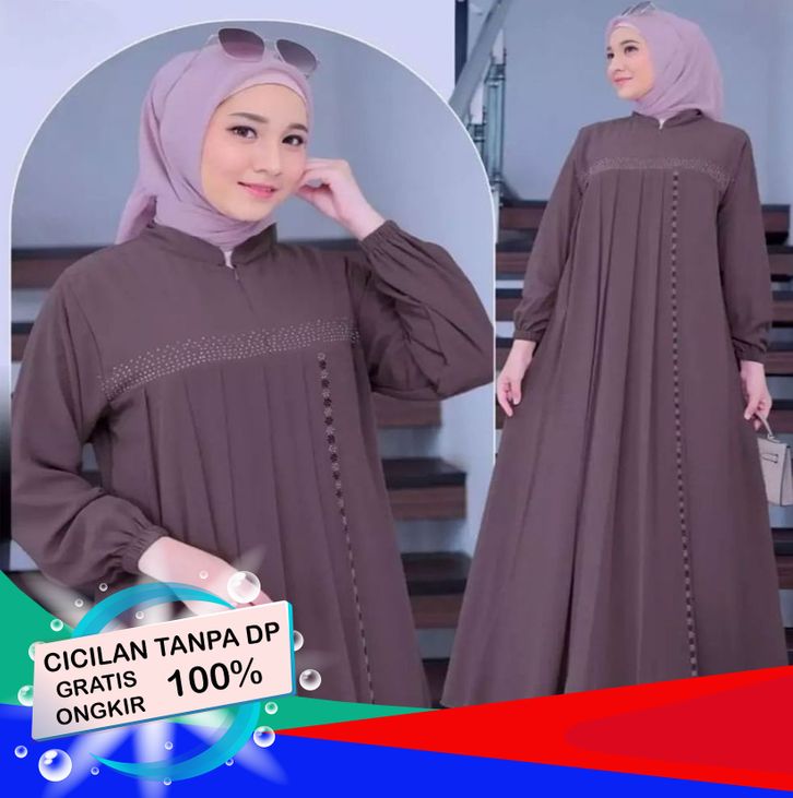 Gamis Azzahra Terbaru 2024 Payet Swarosky Mewah Dress Kondangan Kekinian Bahan Ceruty Pakaian Muslim