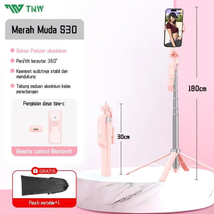tongsis TNW S30 Tongsis TriP00D Bluetooth 1.8m Fill light Tongsis TriP00D Remote - Hitam S30