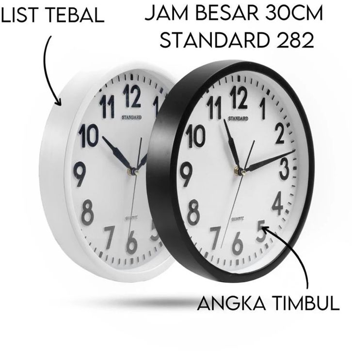 READY Jam Dinding Standard 282 Diameter 30Cm Tebal Angka Timbul Minimalis Murah