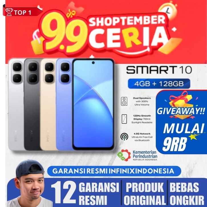 [Mall] Infinix Smart 10 Plus 8/128GB - Up to 16GB Extended RAM - 6.67 Inch 120Hz HD+ - T7250 - 6000 Mah Official Store