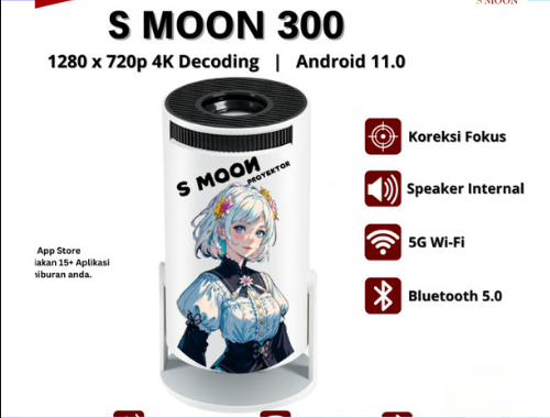 SR - Smoon 300 Smart Projector/LCD TV 180 Lumens wifi Bluetooth Ultra HD Minimalis dan Multifungsi 720P