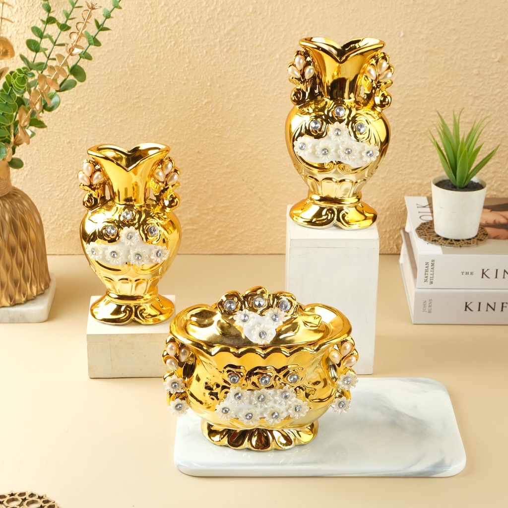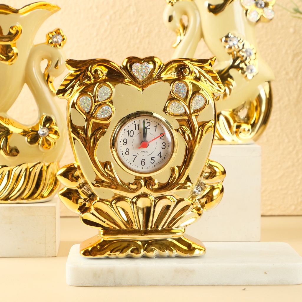 Dekorasi Rumah Evergreen Pajangan / Patung Jam Angsa Set 3 Pcs Hiasan Wedding Gold Dekorasi Ruangan 3 In 1 Ornament Eleg