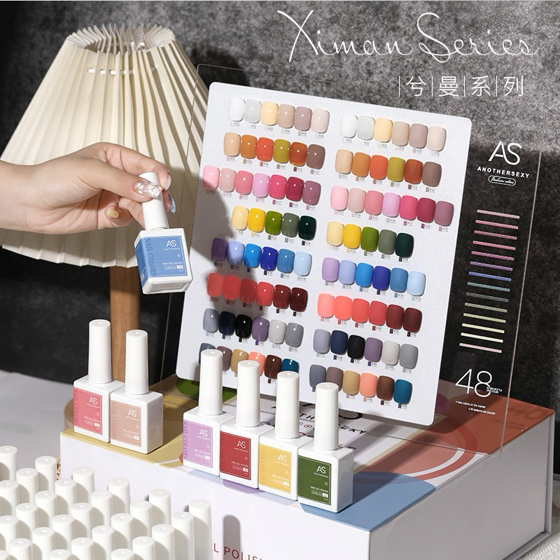 ANOTHER SEXY UV NAIL GEL POLISH SET 48 COLORS KUTEK UV GEL AS 48 WARNA XIMAN SERIES WITH BOX AND COLOR DISLAY 15ML