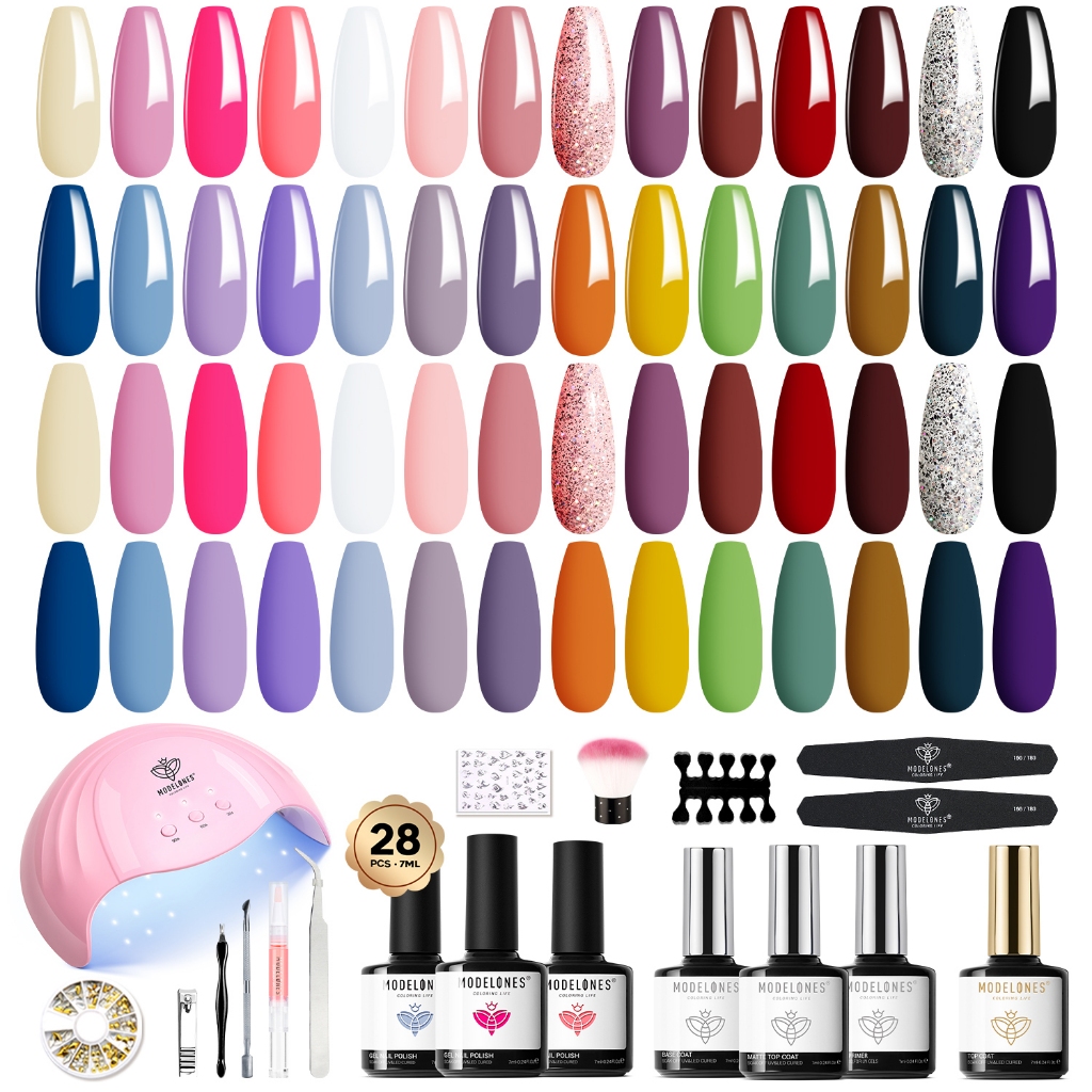 MODELONES GEL NAIL POLISH KIT WITH UV LIGHT 28 COLORS ALL SEASONS SET MANICURE TOOLS DIY