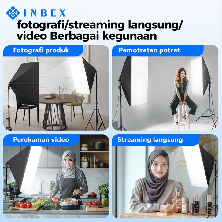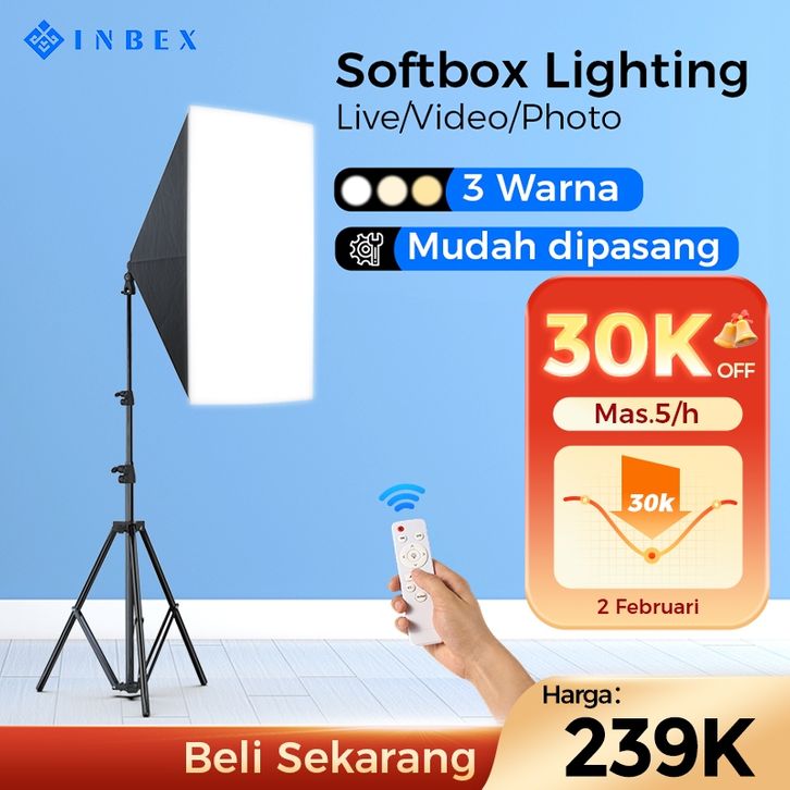 TERLARIS INBEX Softbox Lighting Kit 3 Warna Photography with Remote 3000K 5000k untuk Live Streaming Studio Lampu Video