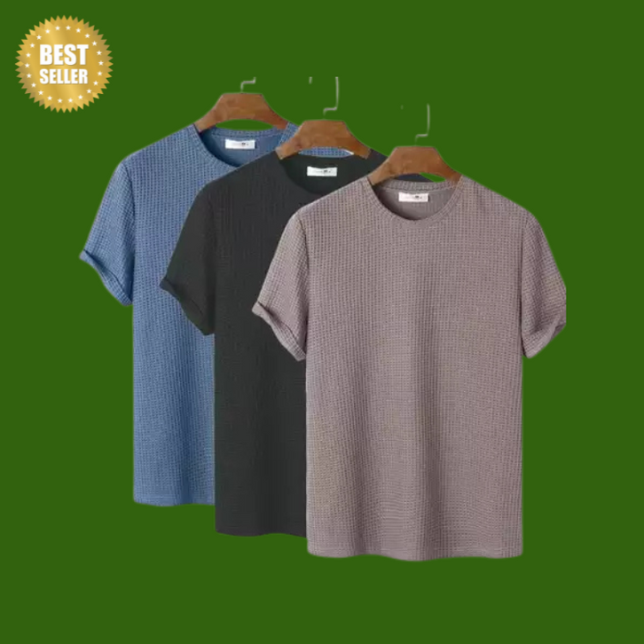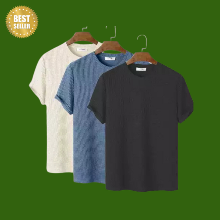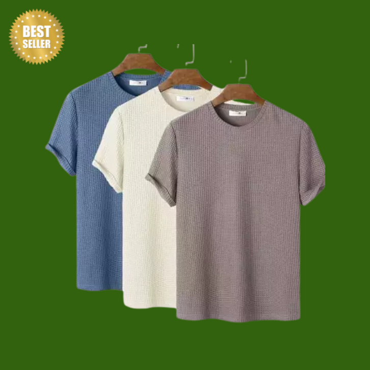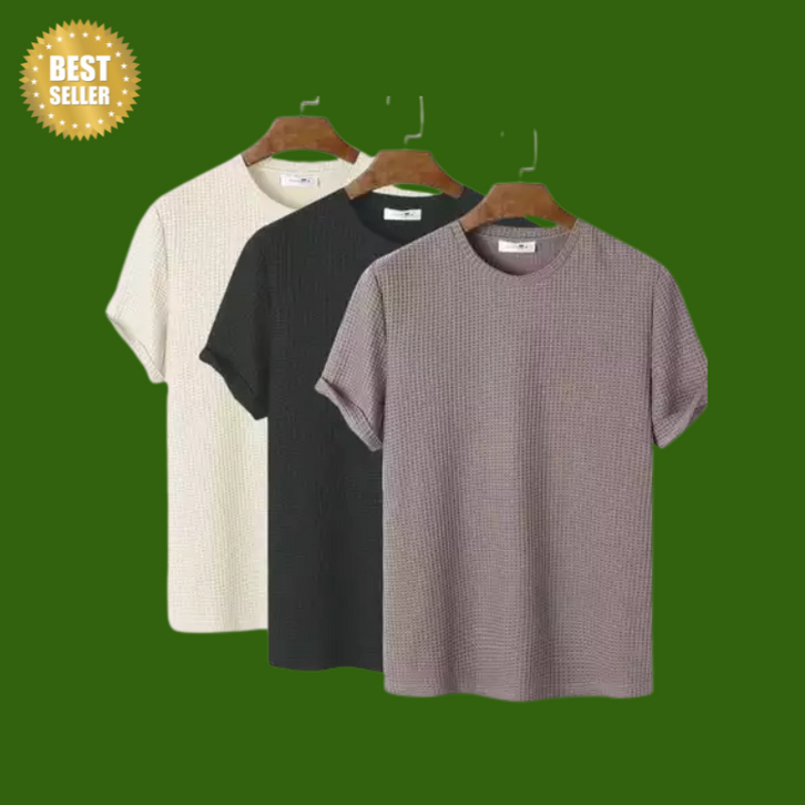 PAKET 3 PCS KAOS PEREMPUAN WAFFLE KNITT POLOS LENGAN PENDEK SIMPEL MURAH TERKINI