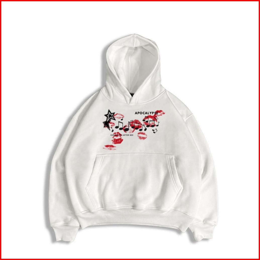 Pullover Hoodie Fleece Lips Apocalypse Cas Putih