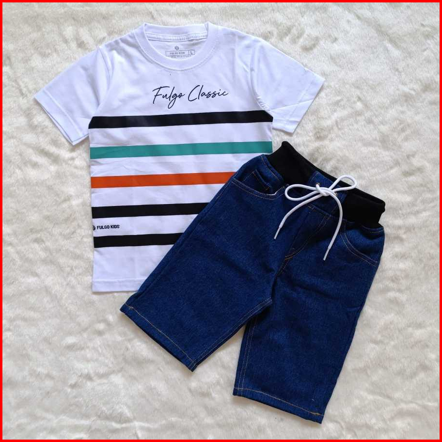 Setelan Baju Kaos Distro Celana Jeans Anak Laki Laki Usia 3-12 Tahun