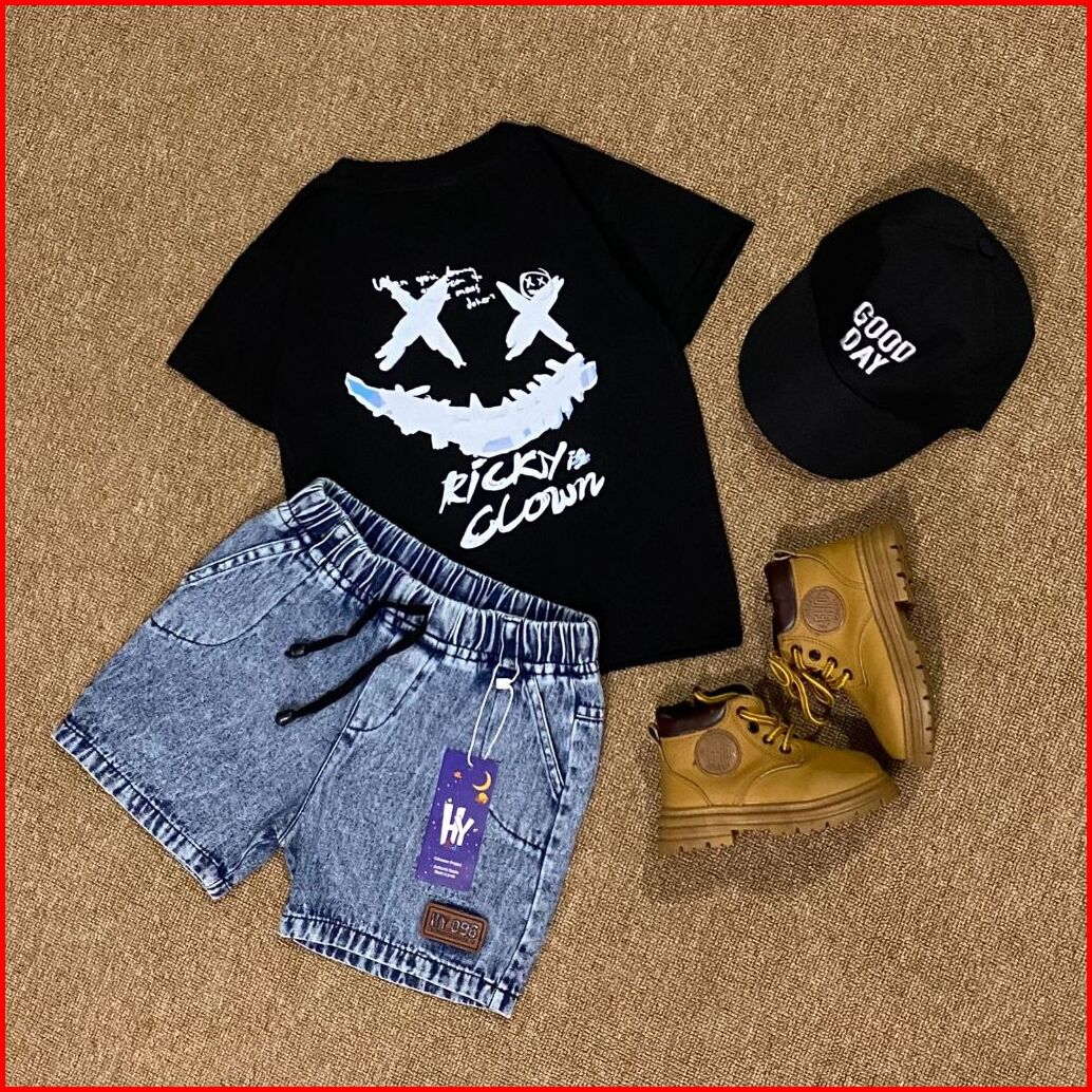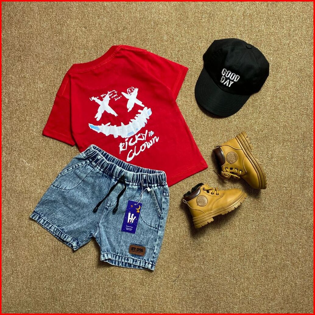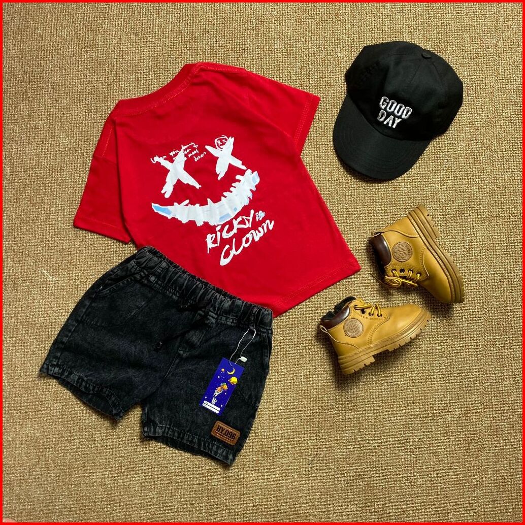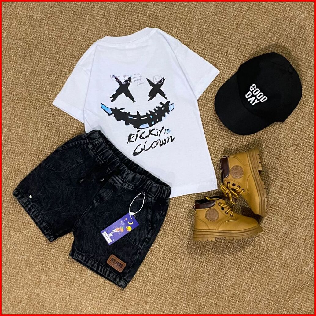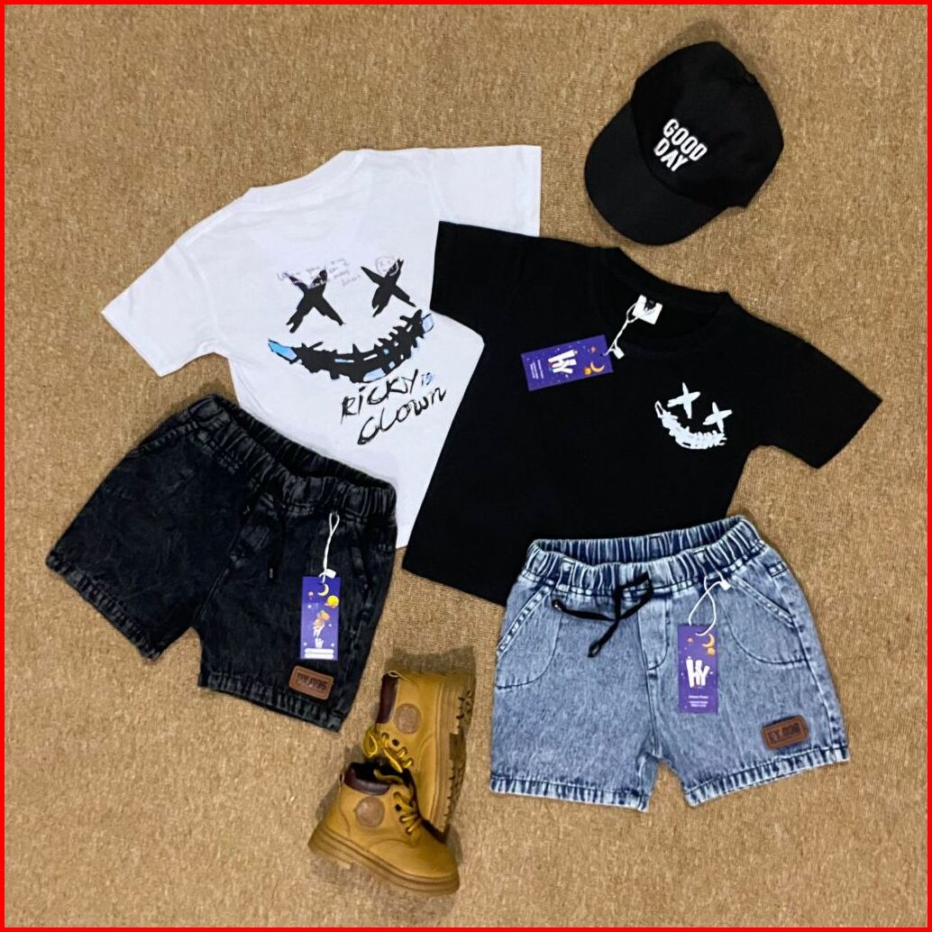 Setelan Jeans Anak Motif Clown Series Usia 1-6 Tahun Laki-laki Dan Perempuan