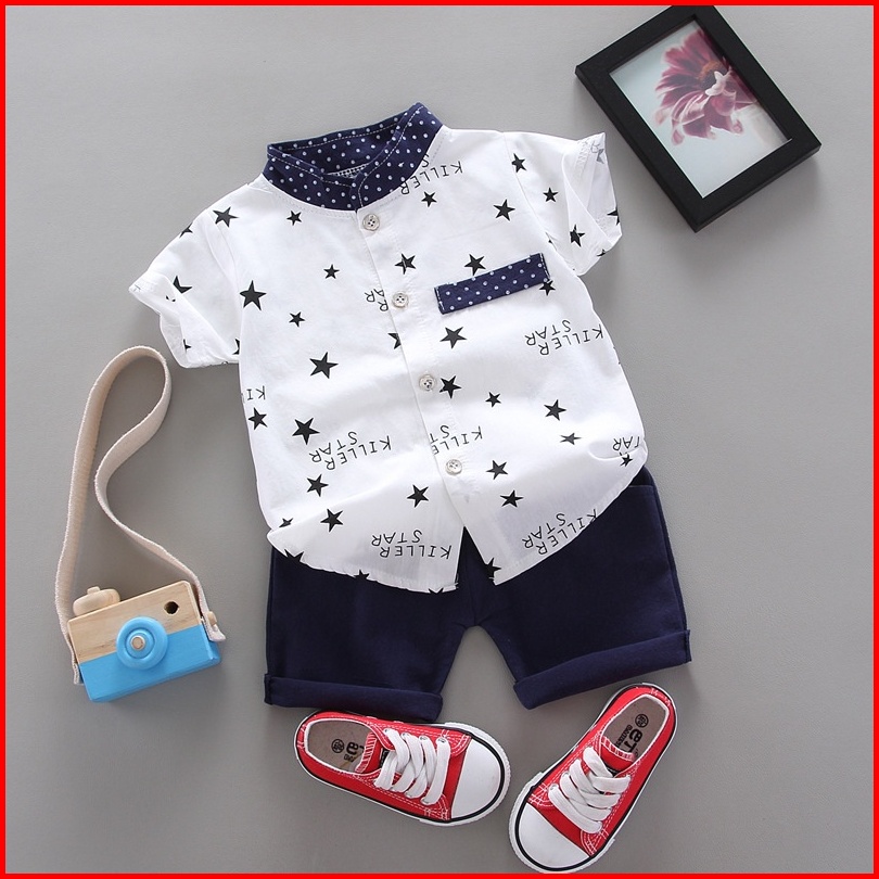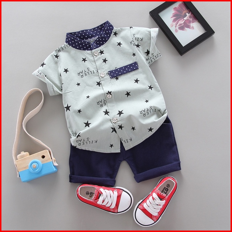 Promo 10.10 6bln-4tahun Setelan Kemeja Anak Motif Stars Import Baju Anak Import Setelan Kemeja Lengan Pendek Anak Kemeja