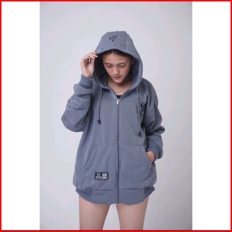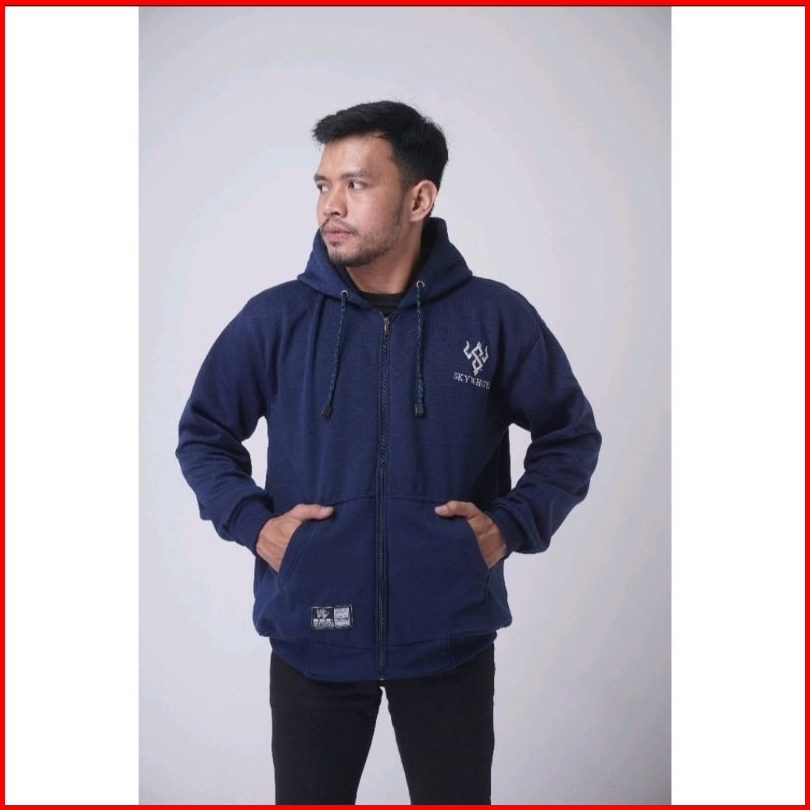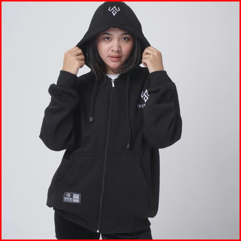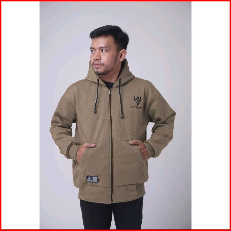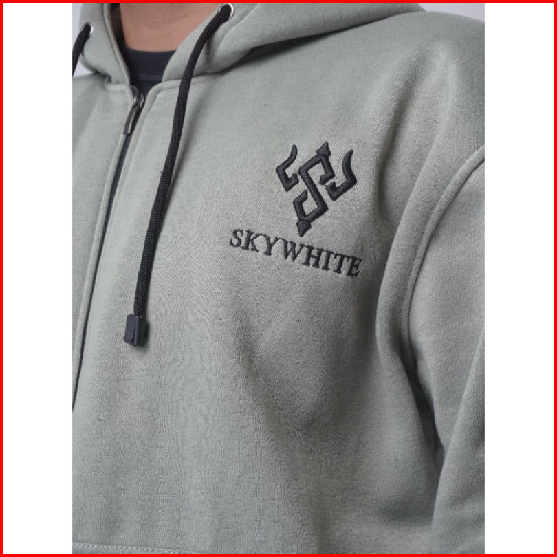 Skywhite Hoodie Zipper Resleting Unisex Cewe Cowo Motif Bordir Premium Kain Fleece Tebal Lembut