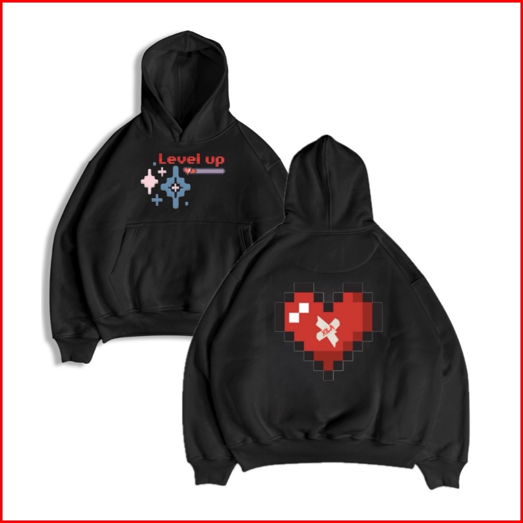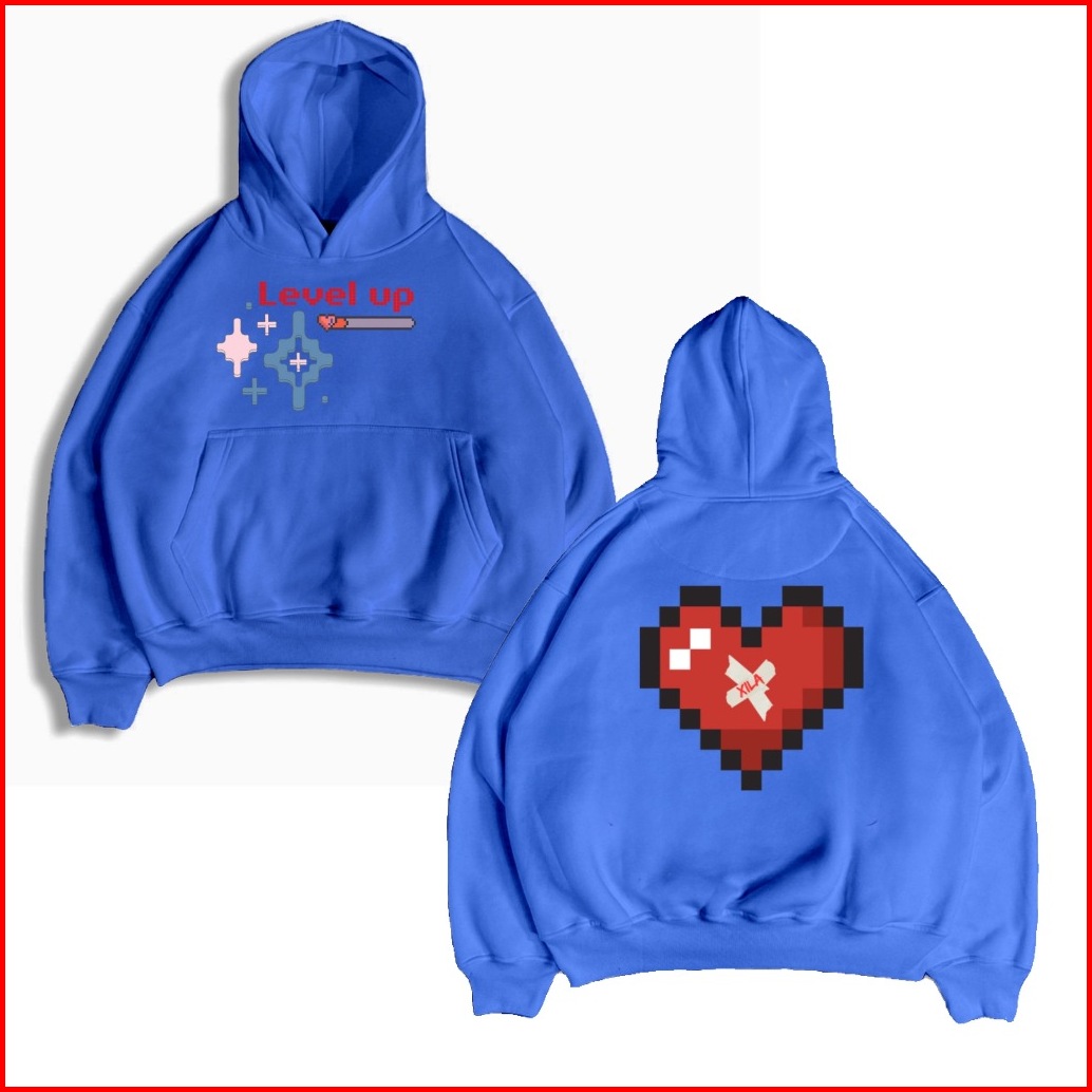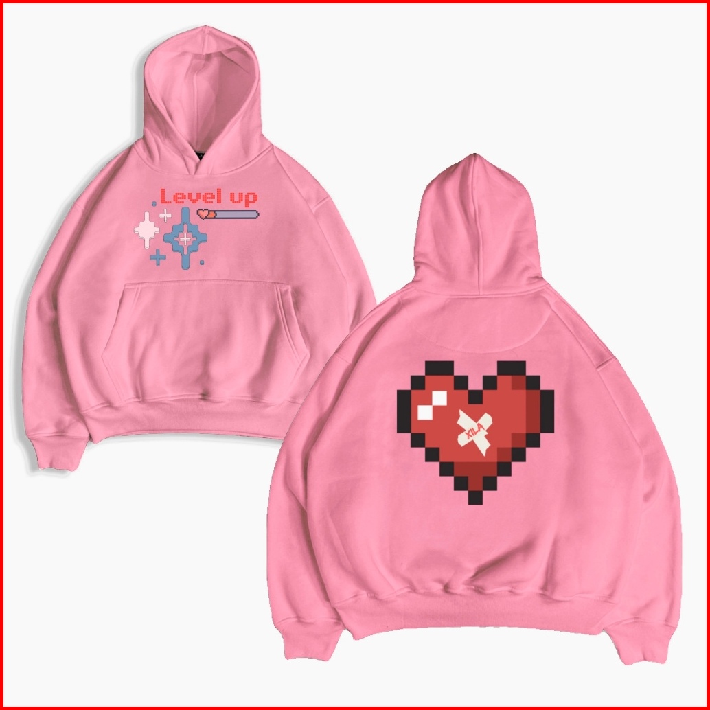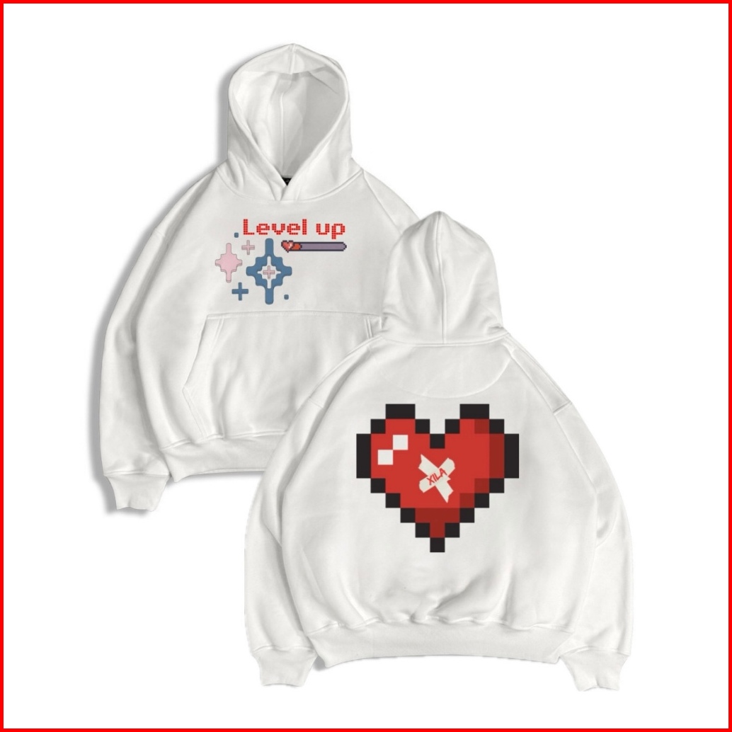 Pullover Hoodie Putih Love Is Level Up Fleece