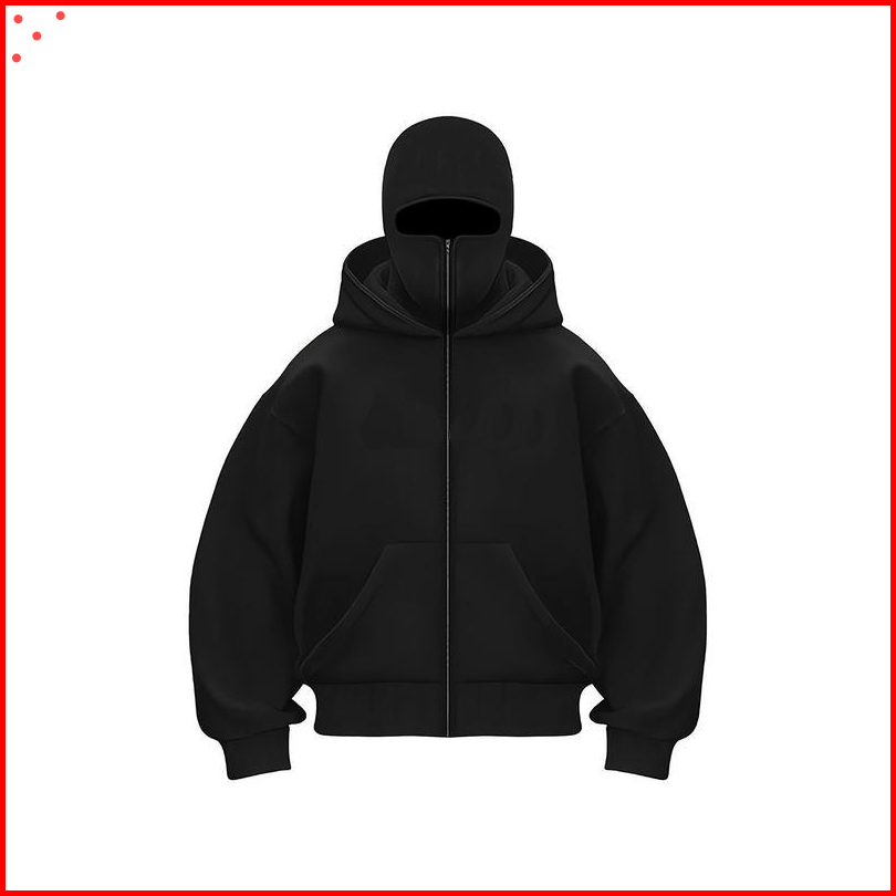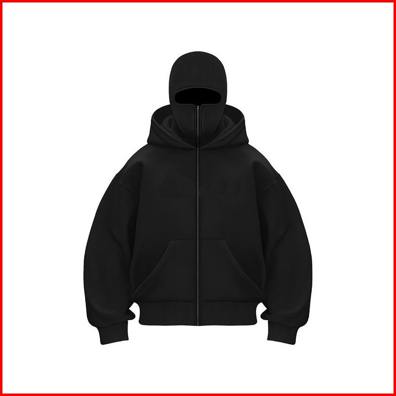 Hoodie Balaclava Zipper Jaket Boxy Hitam Keren Bandung Stilfy