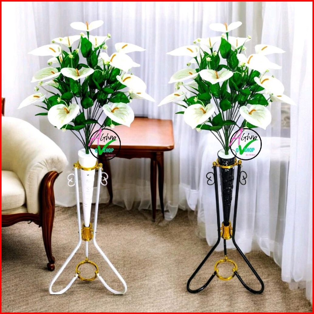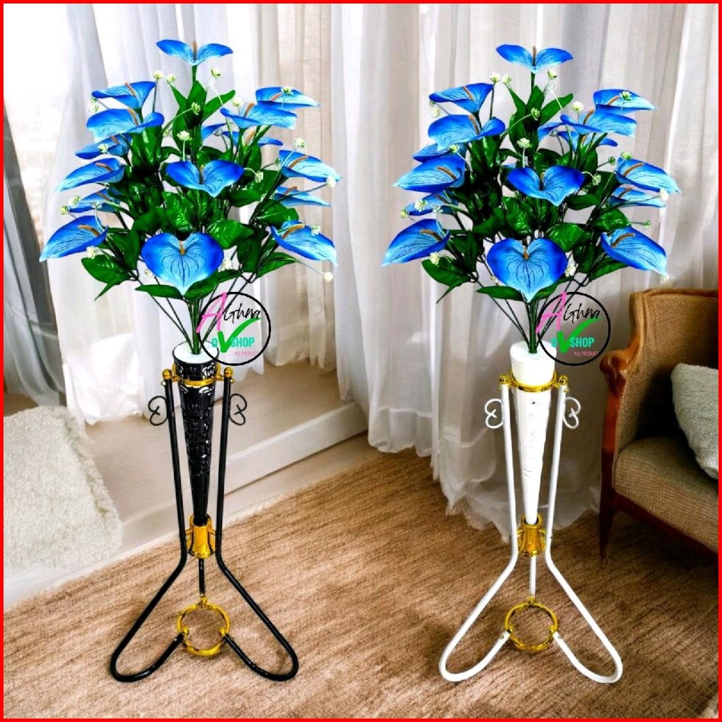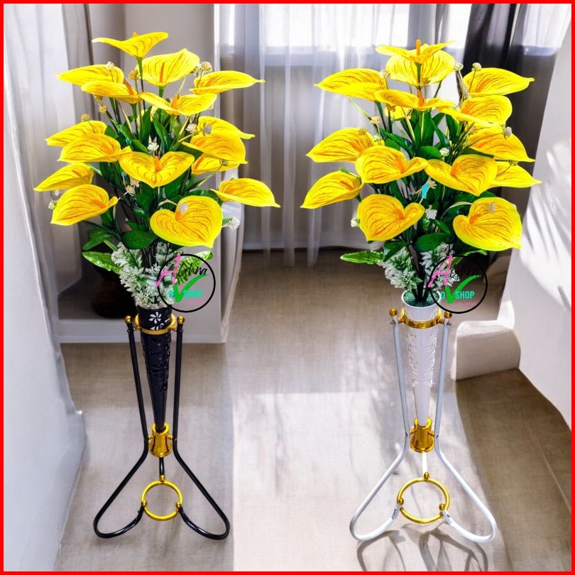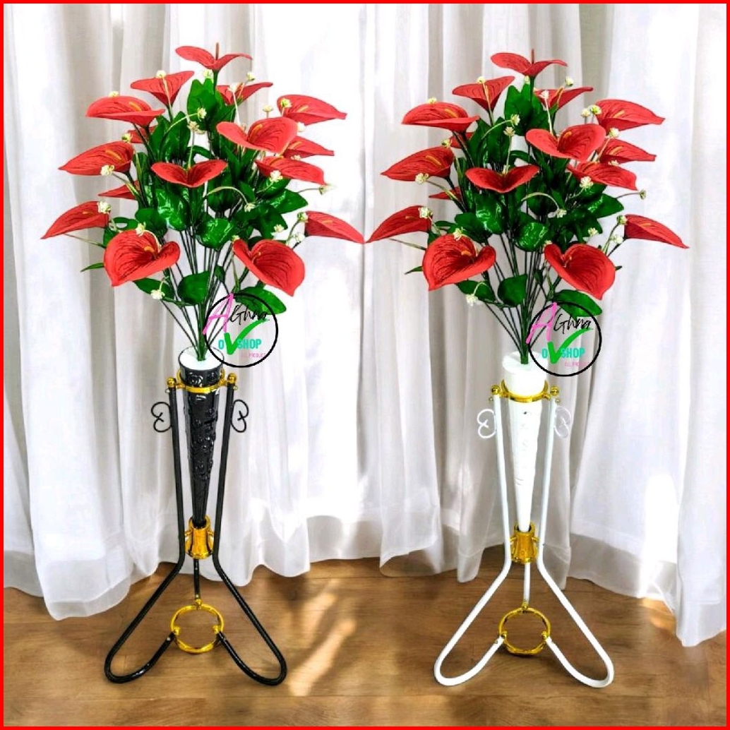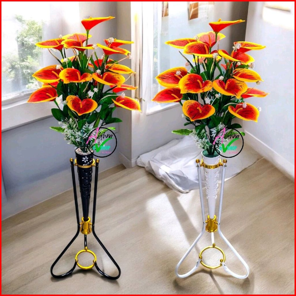 Bunga Hiasan Sudut Ruangan Anthurium Lily 18 Kuntum Lengkap Dengan Vas Standing Besi Pot Plastik Dekorasi Ruangan
