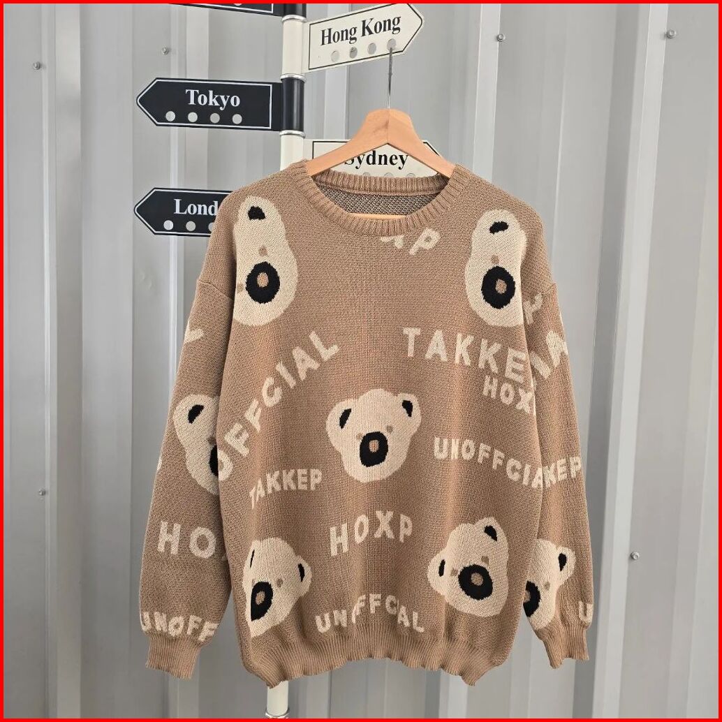 Cyc Realpict Outwear Takkep Bear Sweater Rajut Tebal Sweatshirt Wanita Trendy Murah