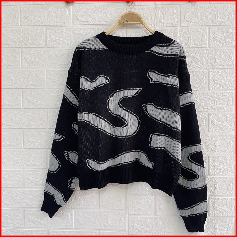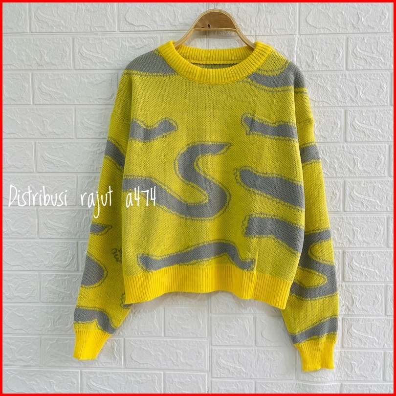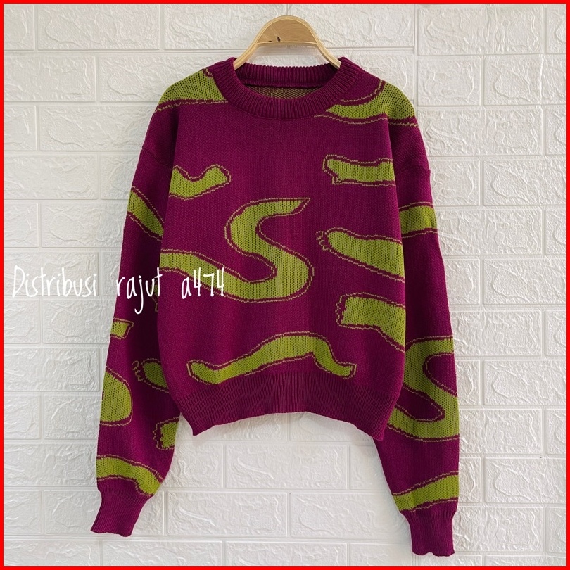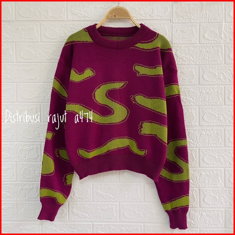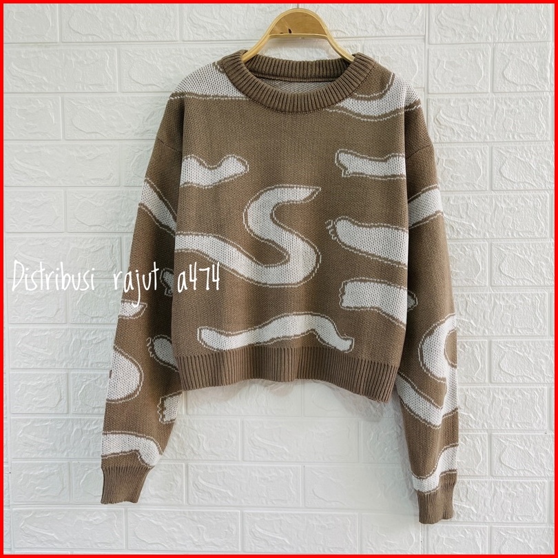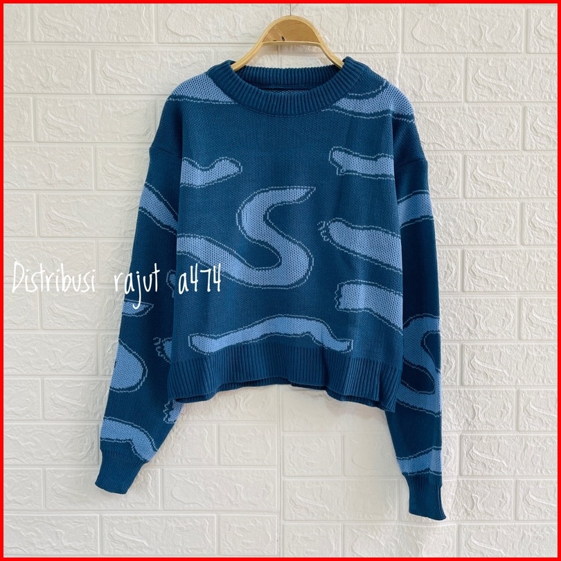Aurora Sweater Rajut Import Motif S Korea Lengan Panjang Wanita