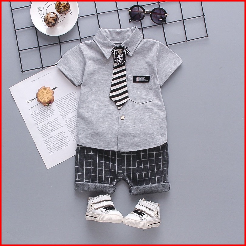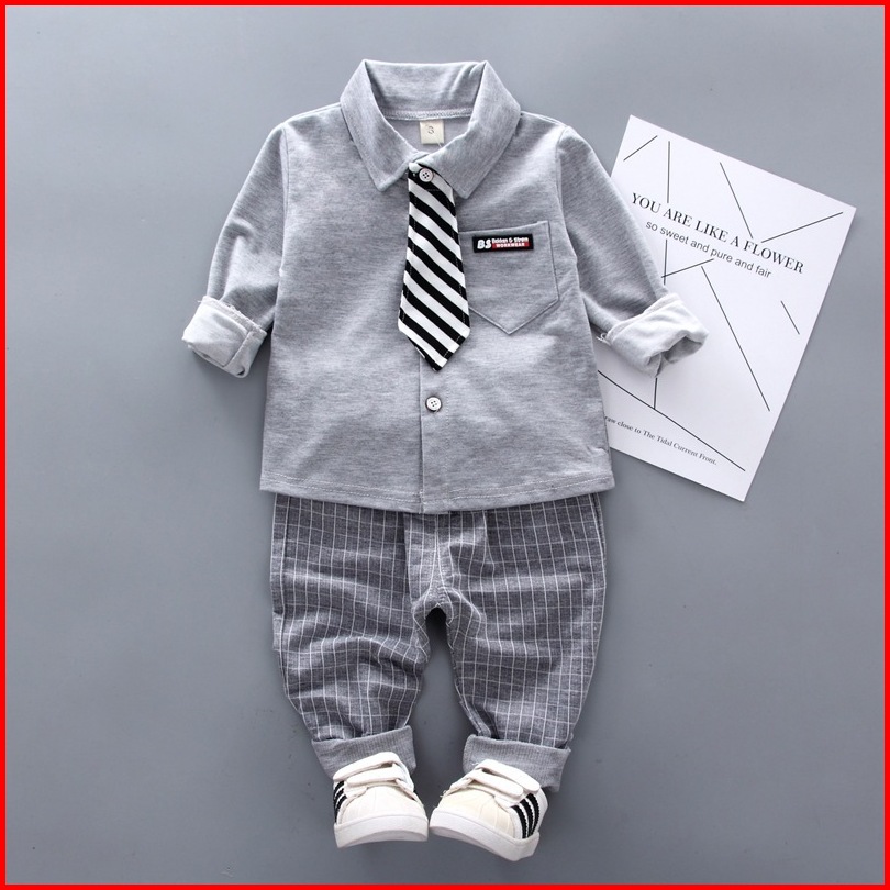 Setelan Baju Anak Laki-laki 6 Bulan - 5 Tahun Lengan Celana Panjang Import Model Formal Berdasi