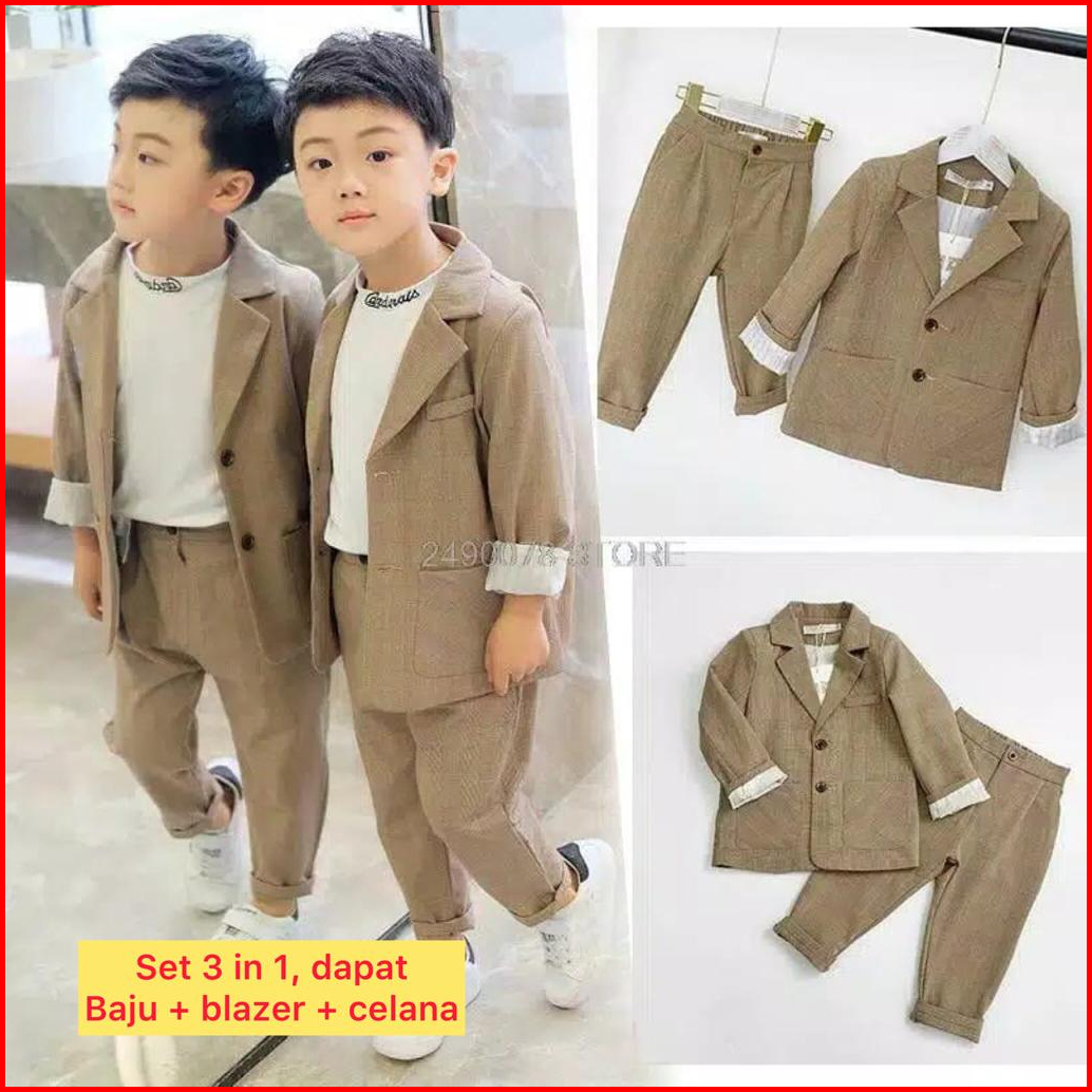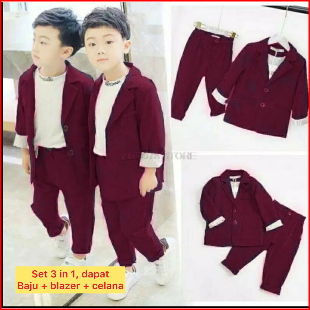 Baju Anak Laki Laki 3in1 Dapat Baju Jas Celana Setelan Anak Cowok Baju Pesta Anak Cowok Murah Baju Jas Anak Laki Ala Kor