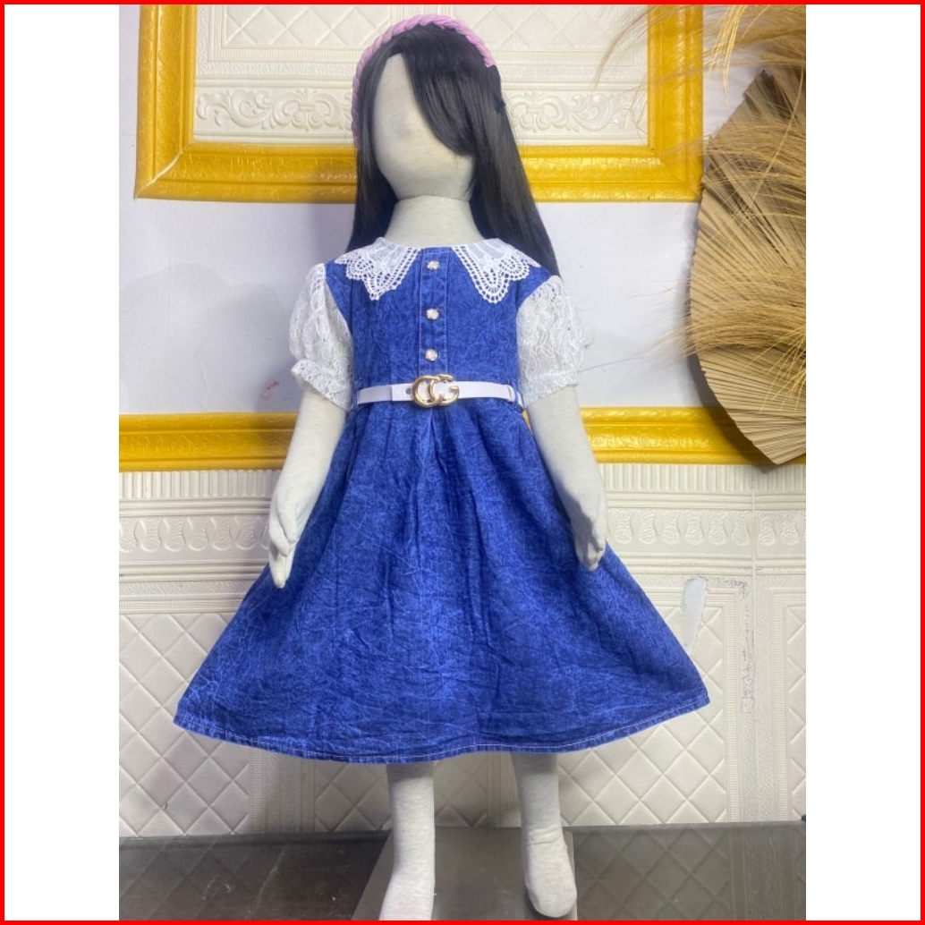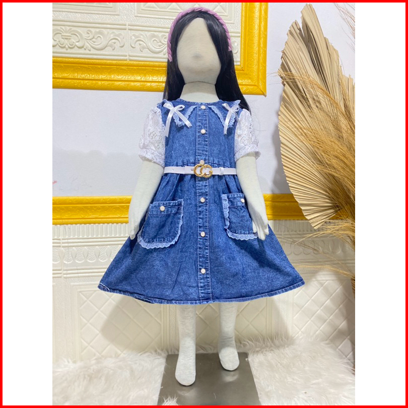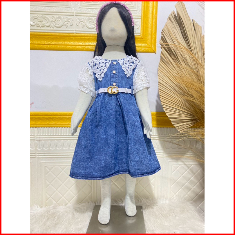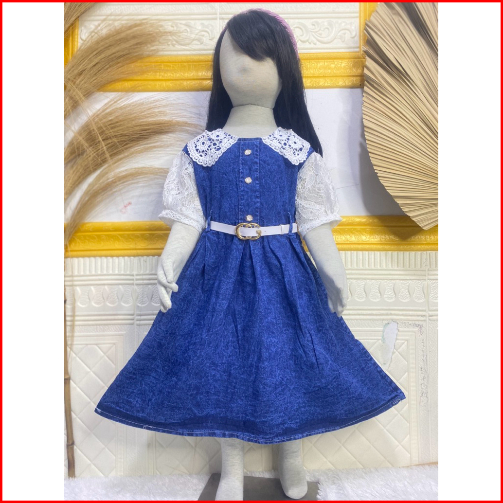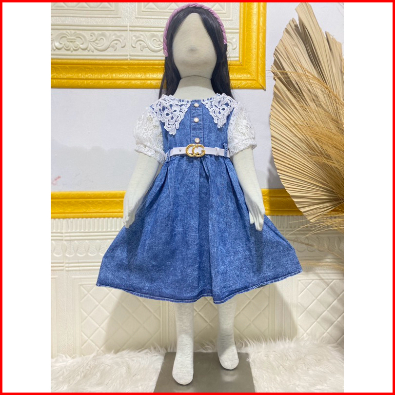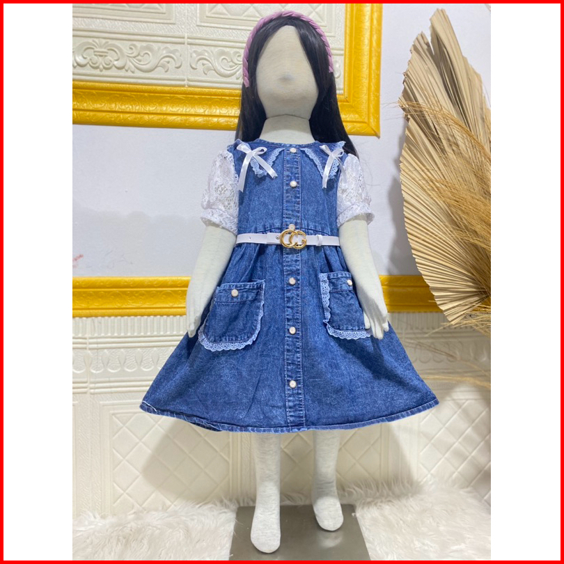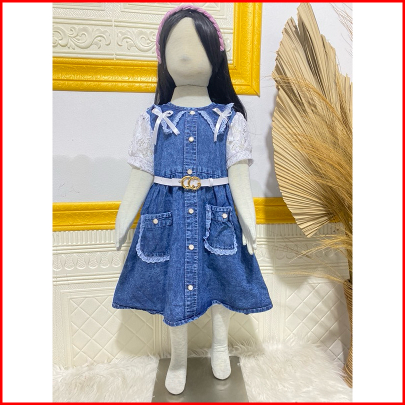 Dress Jeans Mix Brukat Anak Perempuan Usia 3 Tahun - 9 Tahun Baju Dress Jeans Viral Anak Perempuan Baju Viral Anak Baju
