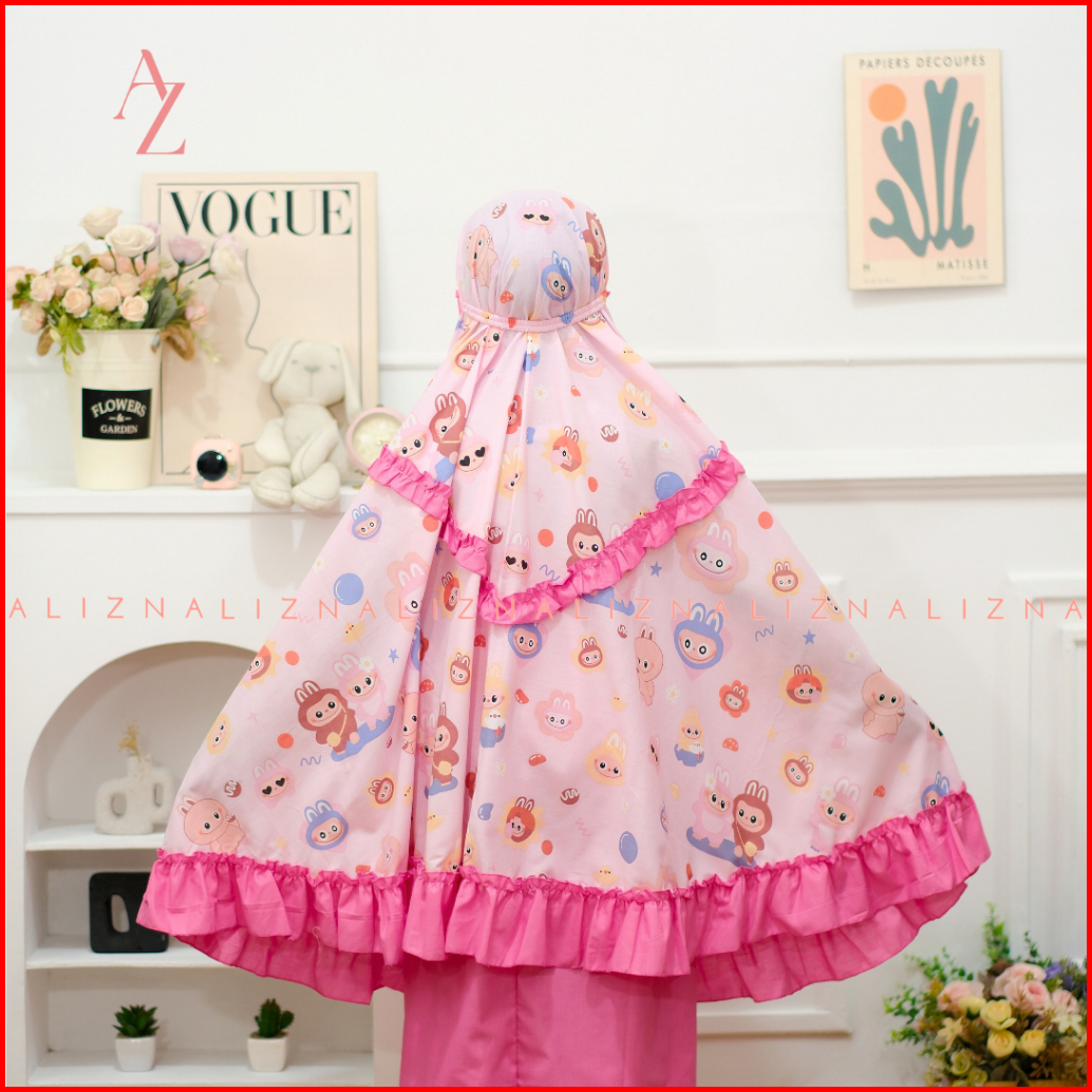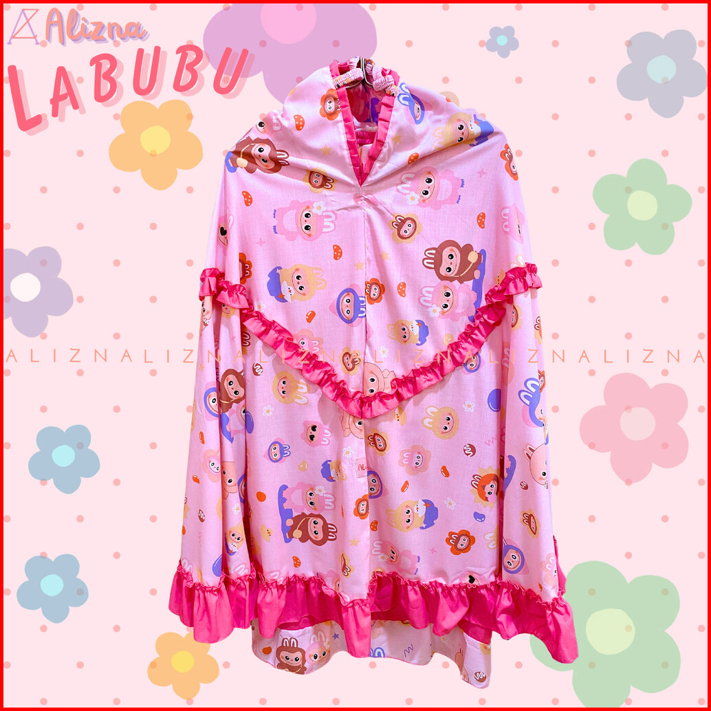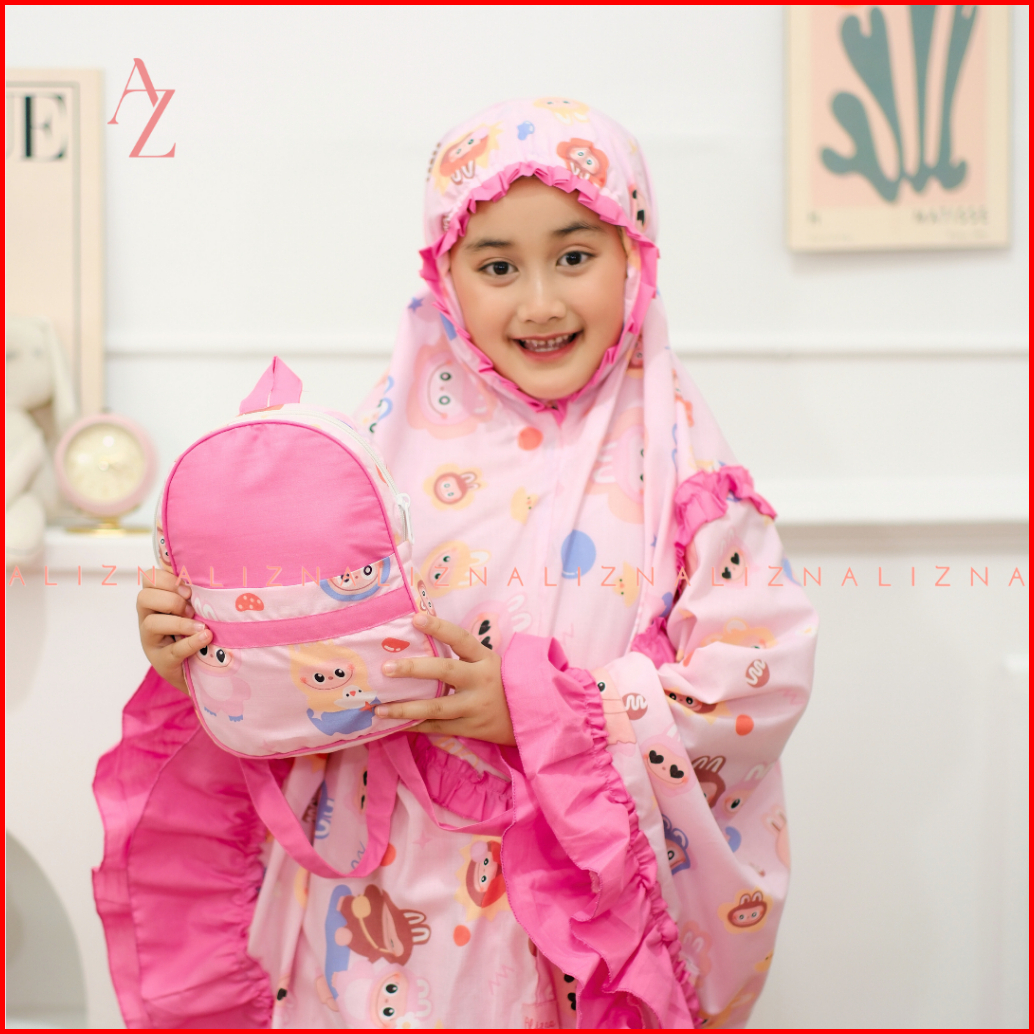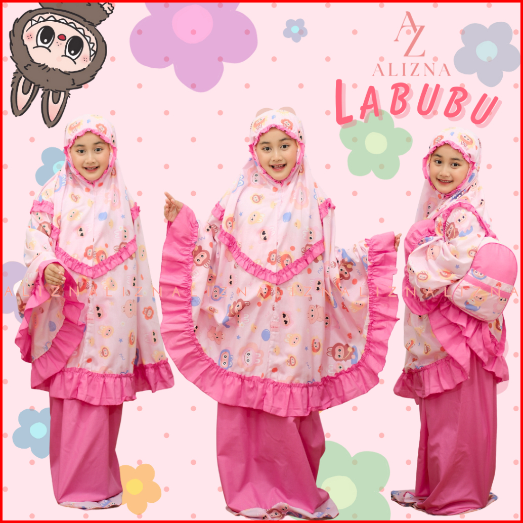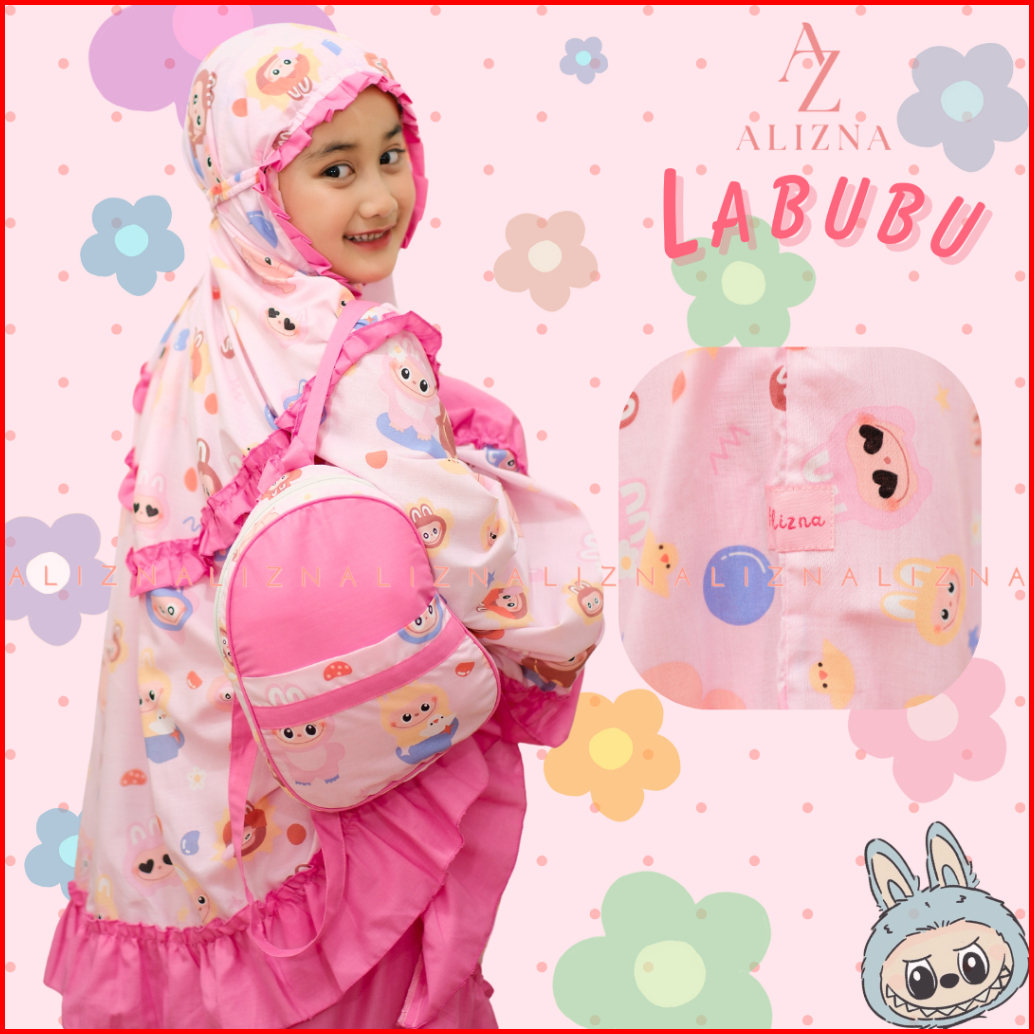 Alizna - Labubu - Mukena Anak Karakter 3in1 Free Tas Ransel Dan Sajadah Muka
