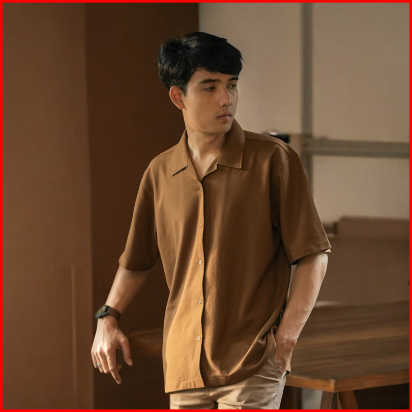 Goodethics - Kemeja Kerah Terbuka Lengan Pendek Bowling Oversized Pique Shirt