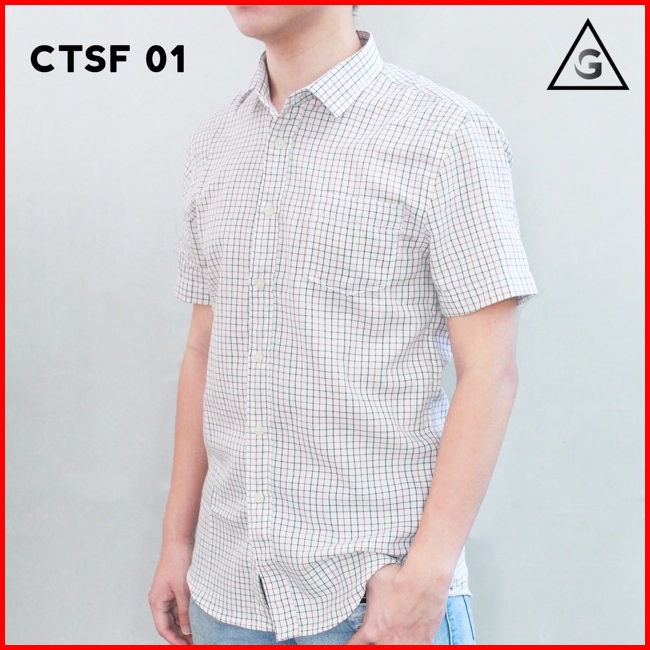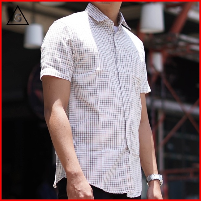 Gwardo Kemeja Bw Kotak Kotak Slimfit Lengan Pendek Ctsf01