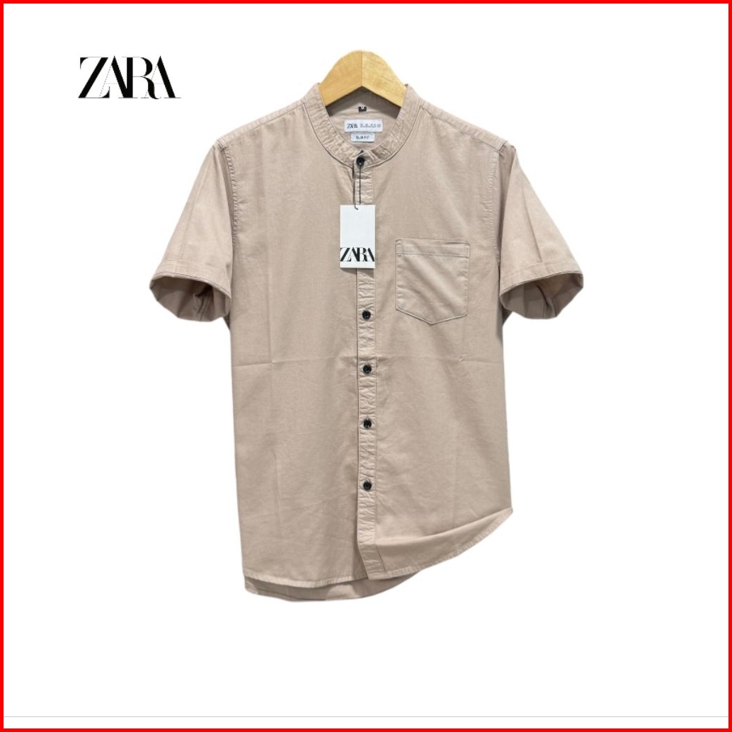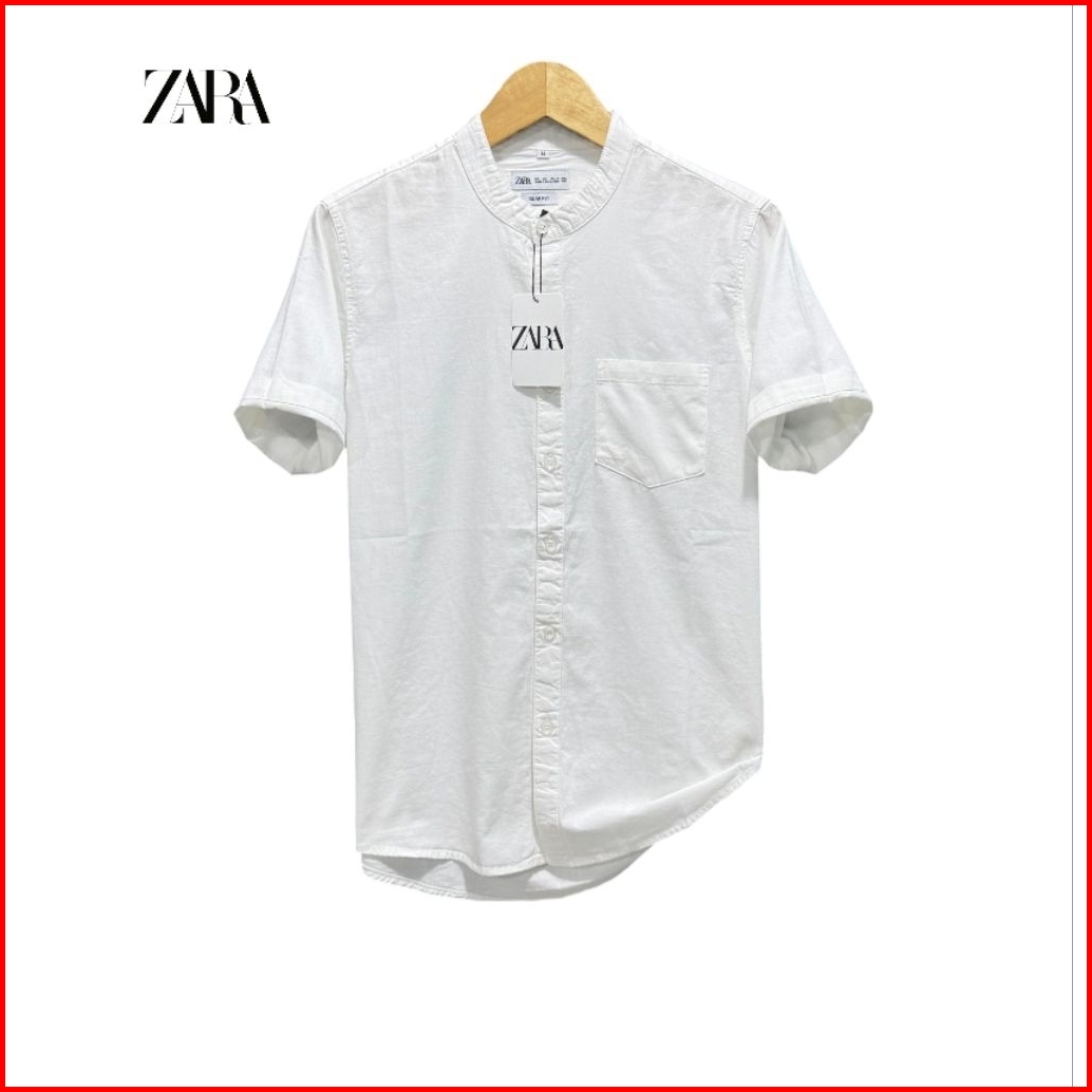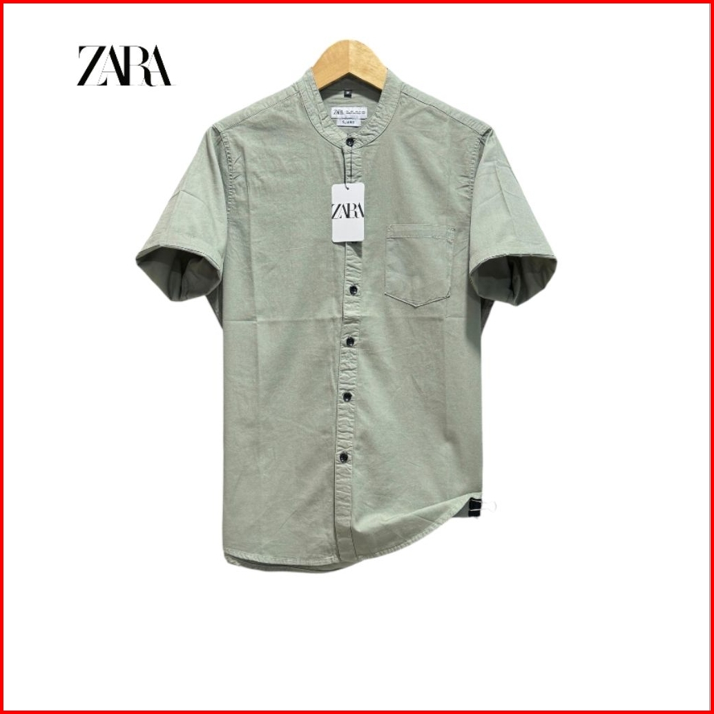 Kemeja Shanghai Pria Lengan Pendek Zara Slimfit Bahan Katun Twill