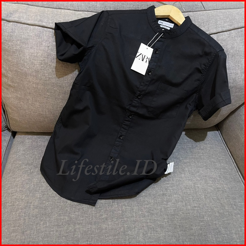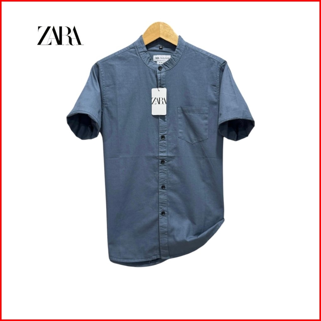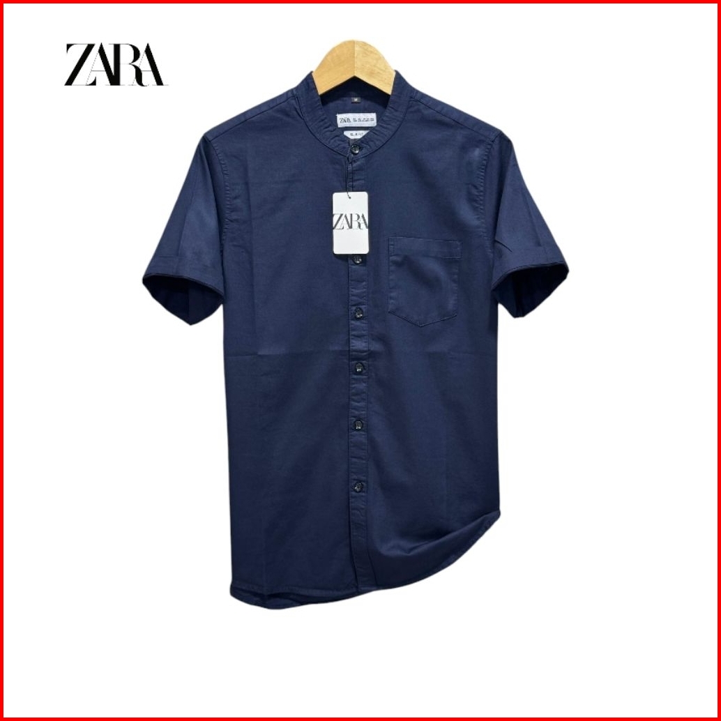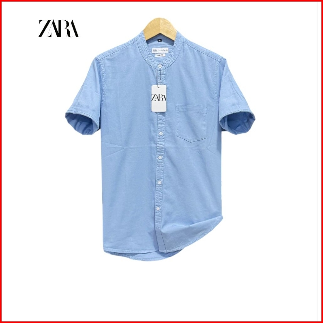 Kemeja Shanghai Pria Lengan Pendek Zara Slimfit Bahan Katun Twill