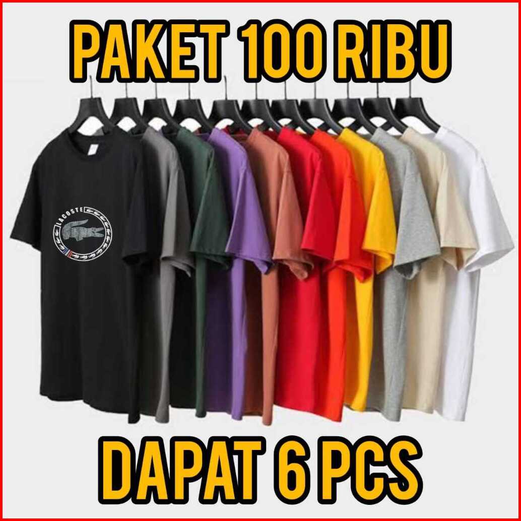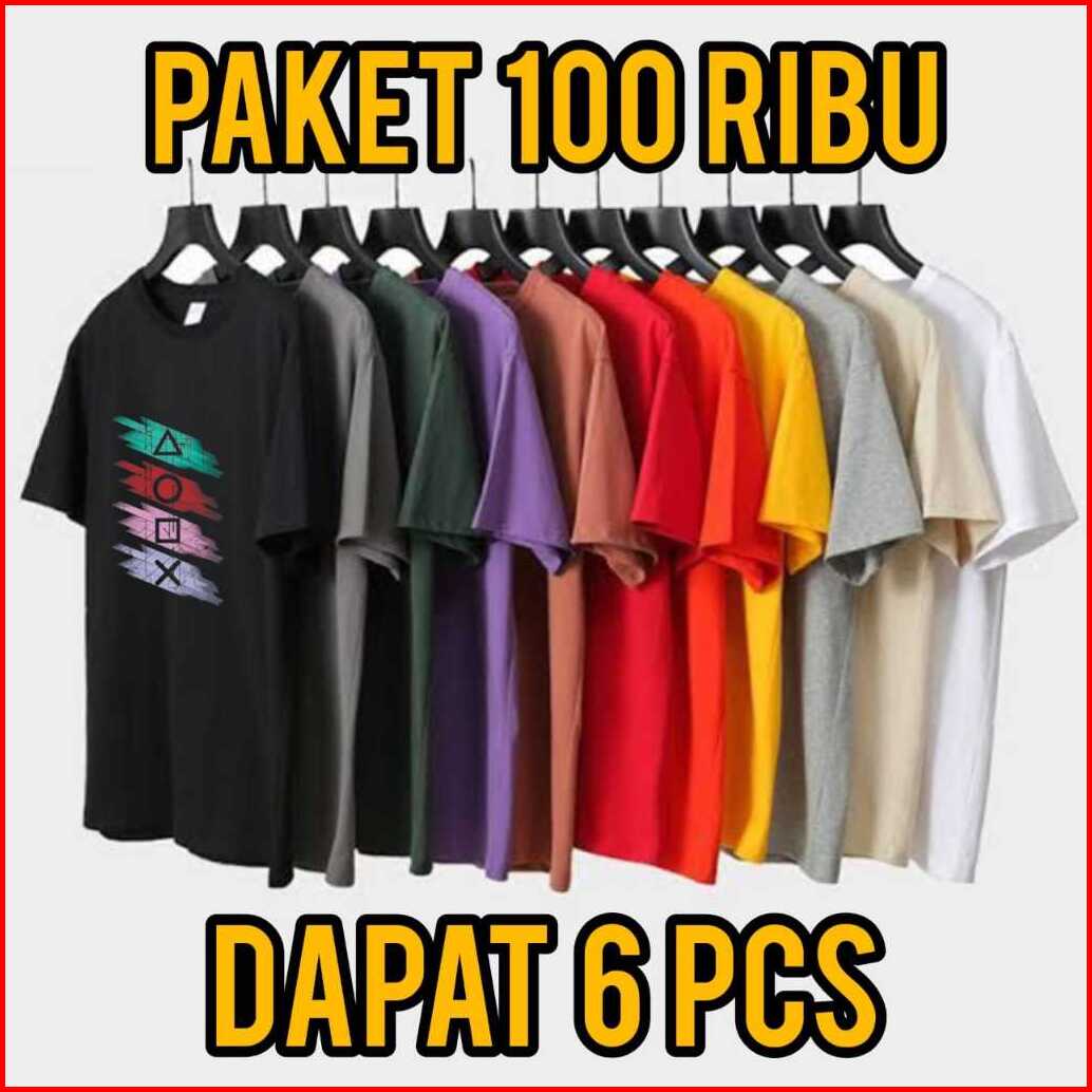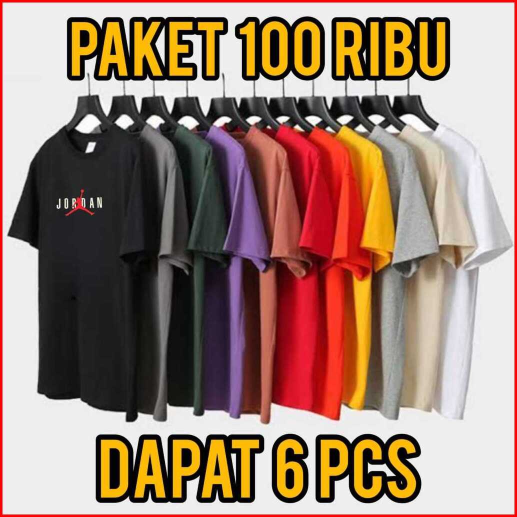 Paket 6 Kaos T-shirt 100 Ribu Baju Kaos Pria Distro Original Lengan Pendek Unisex Oblong Murah