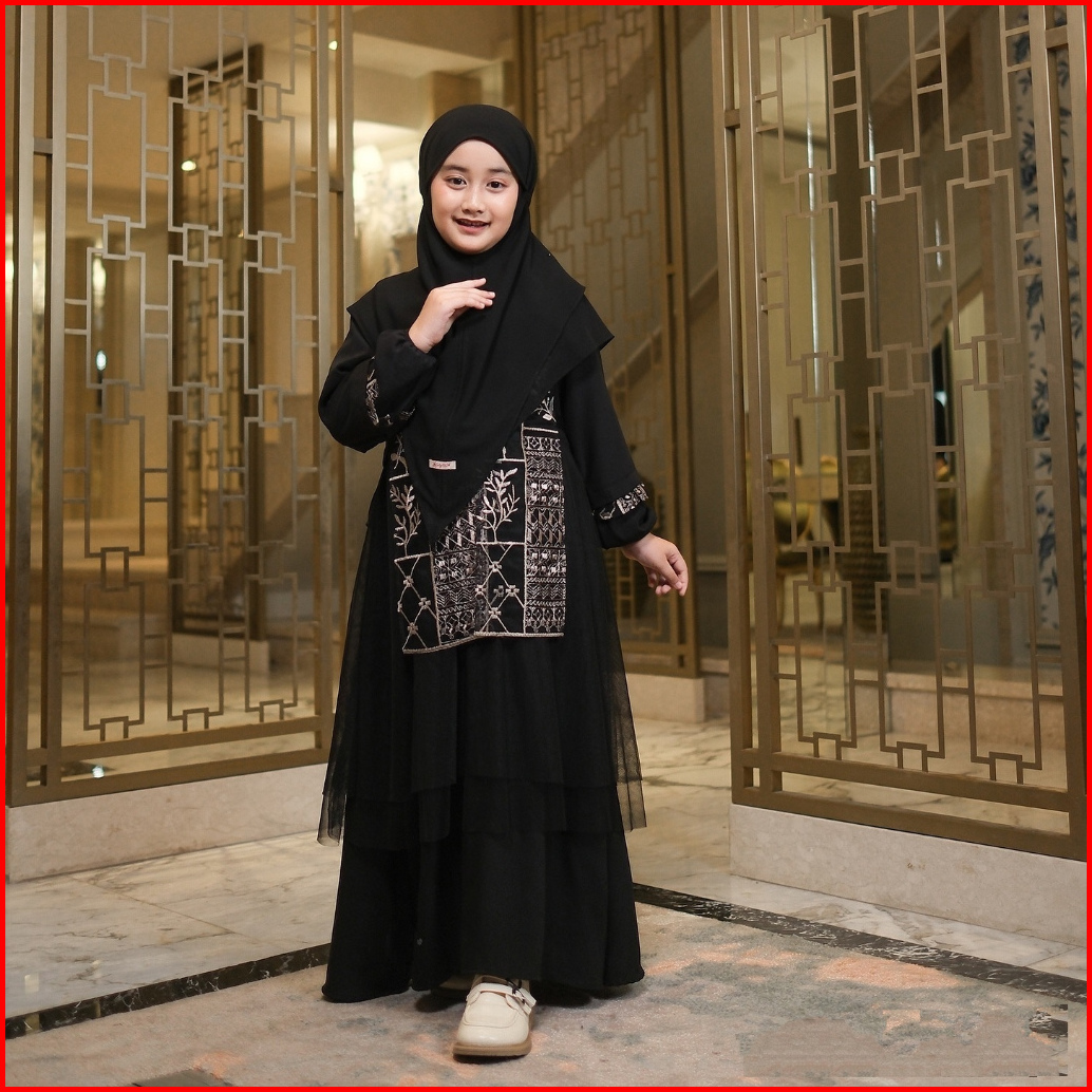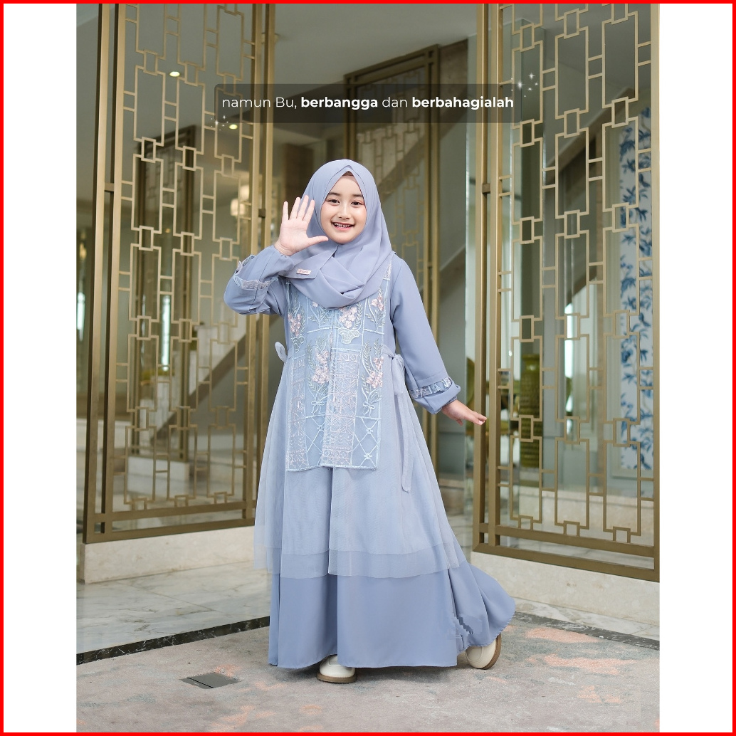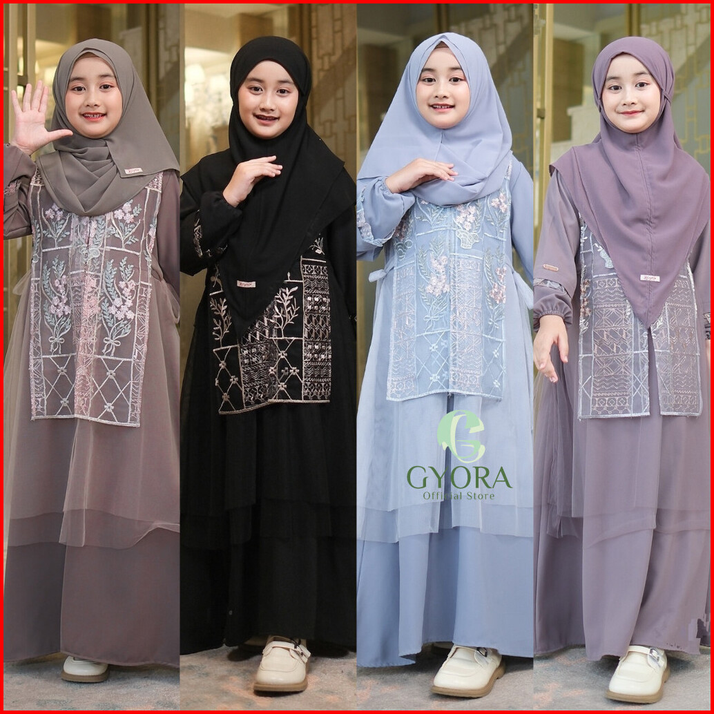 Gyora Gamis Pesta Anak Baju Lebaran Mix Brukat 8-13 Tahun Dress Kids Korean Tile Layer Ceruty Babydoll