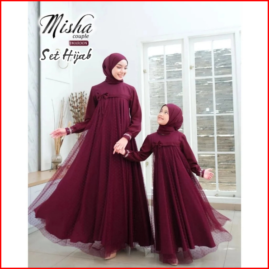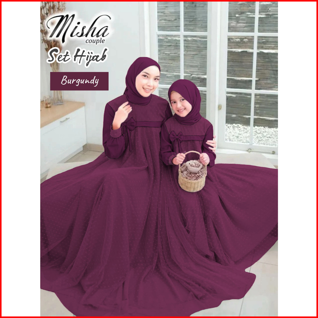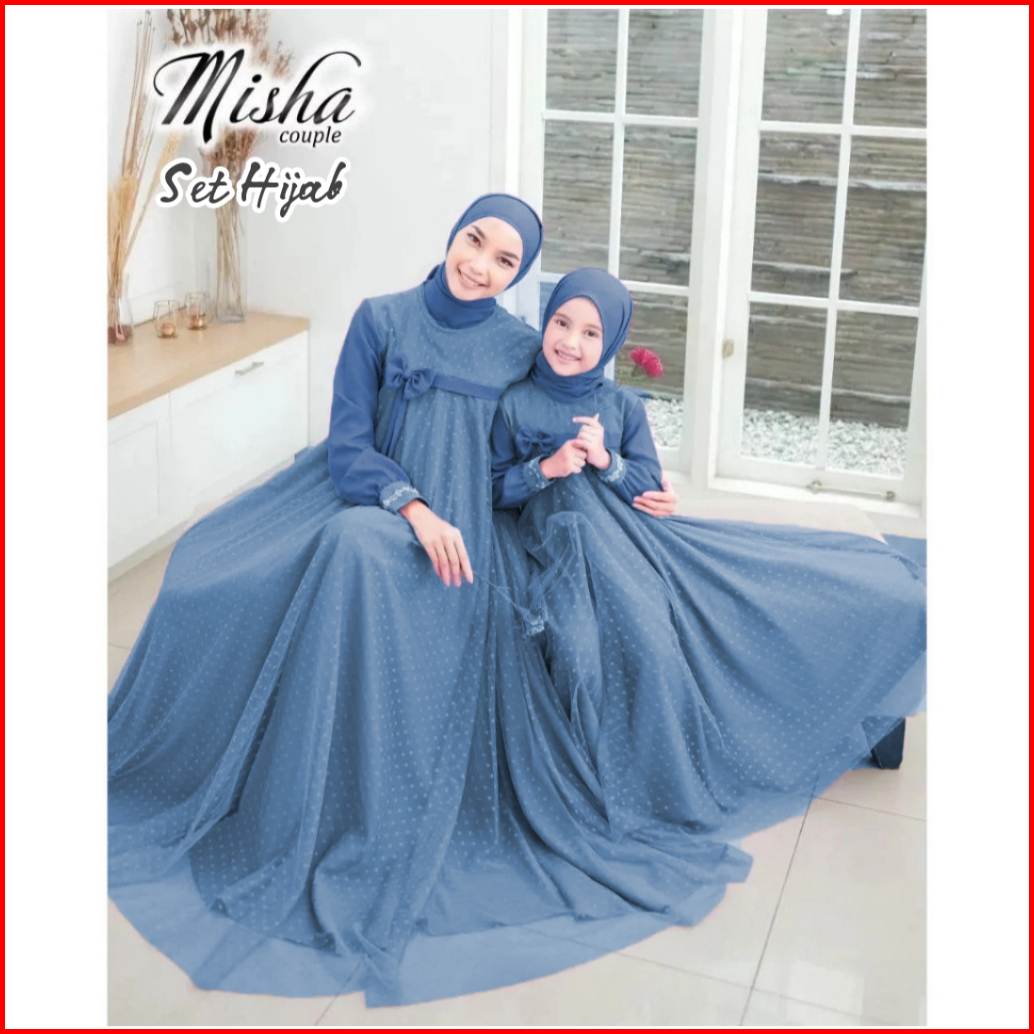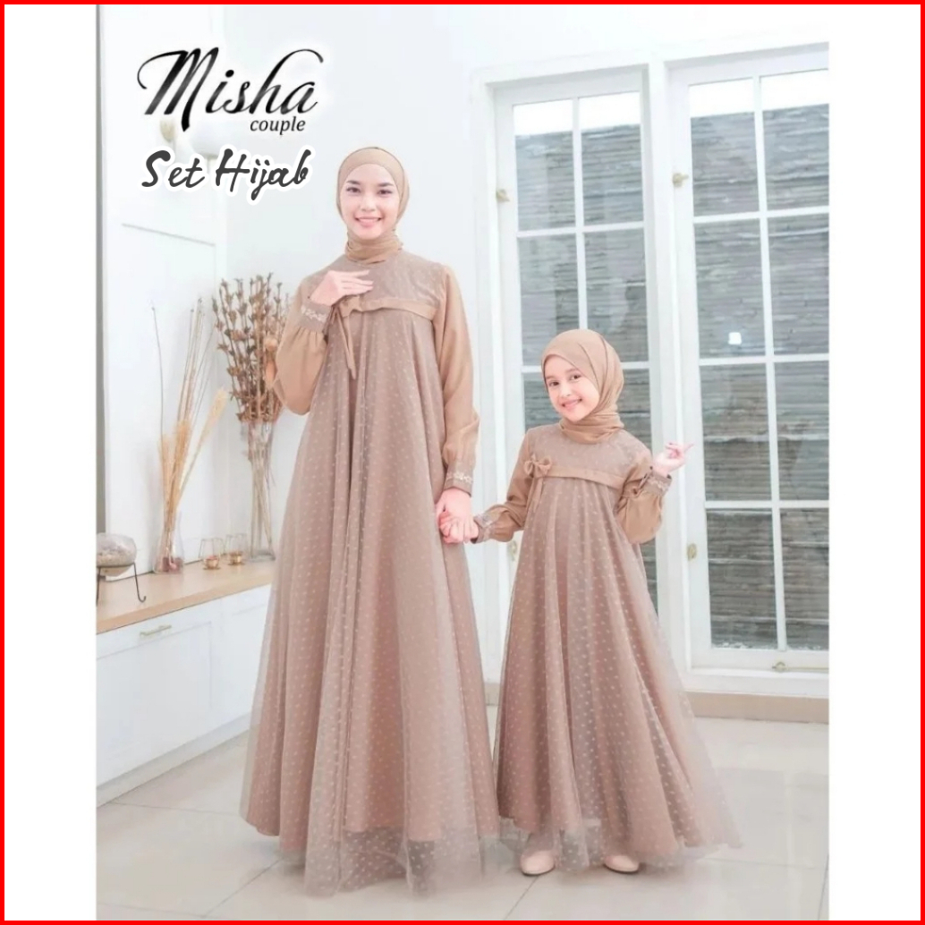 Baju Gamis Couple Mom And Kids Dress Ibu Dan Anak Couple Gaun Crinkle Airflow Mix Tile Dot