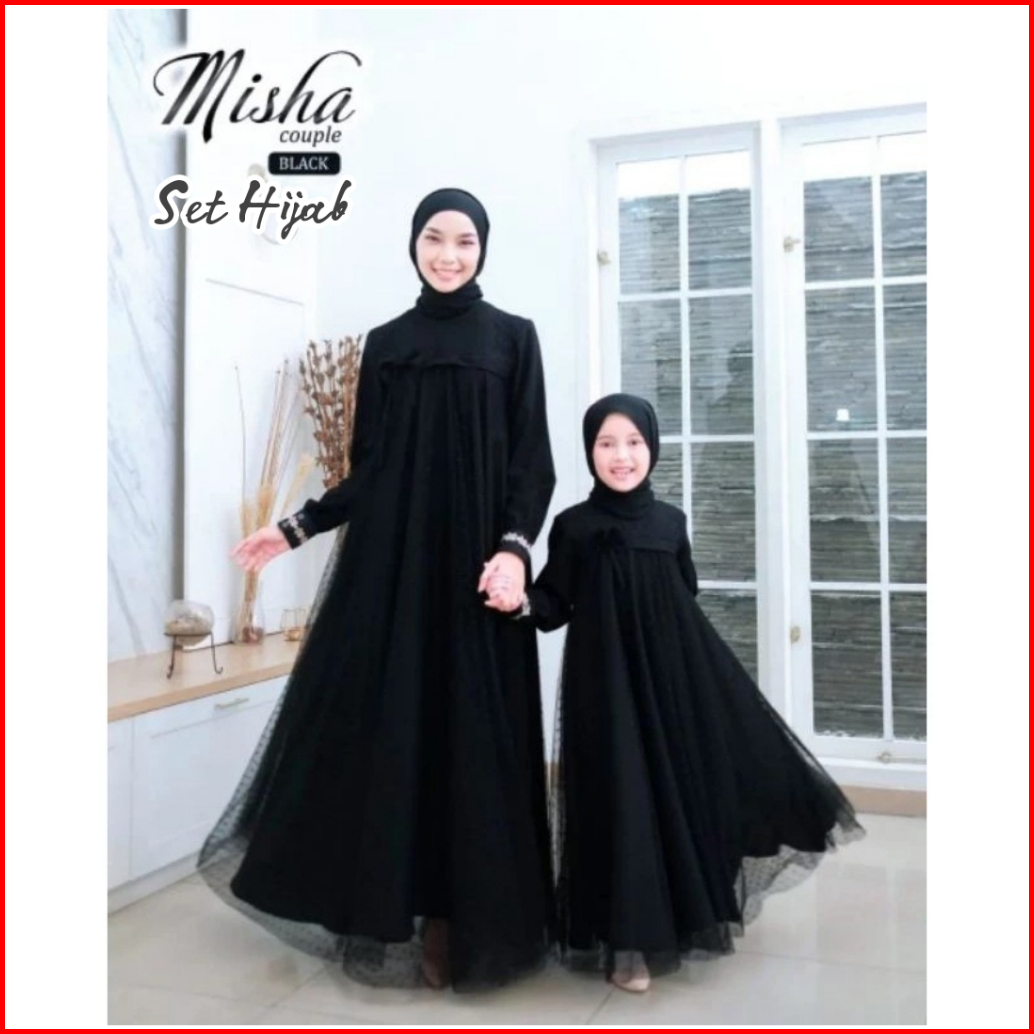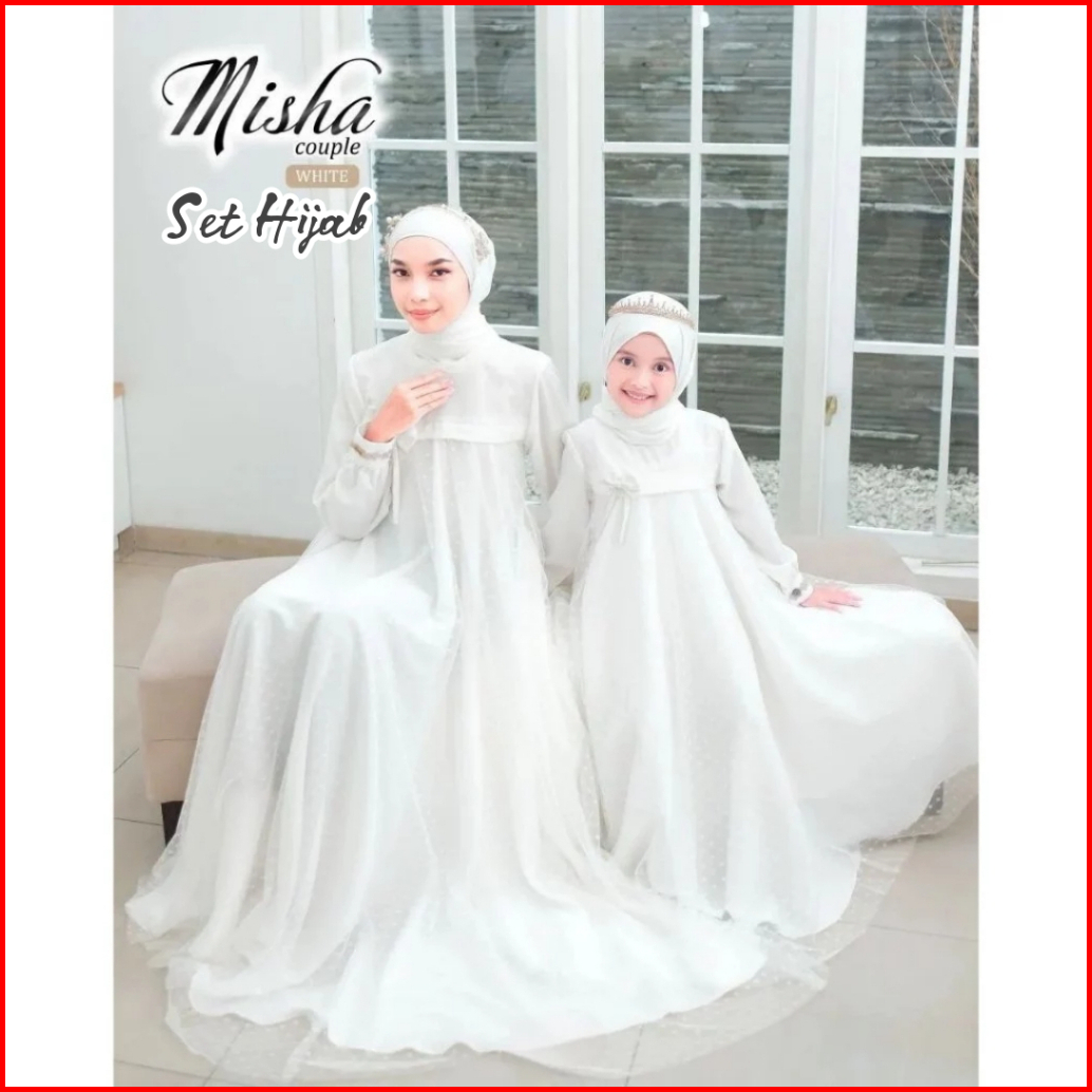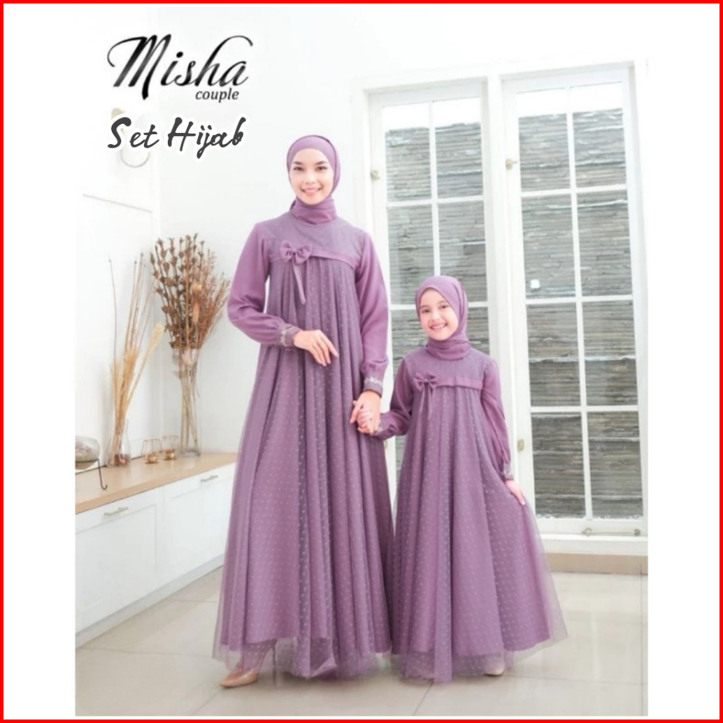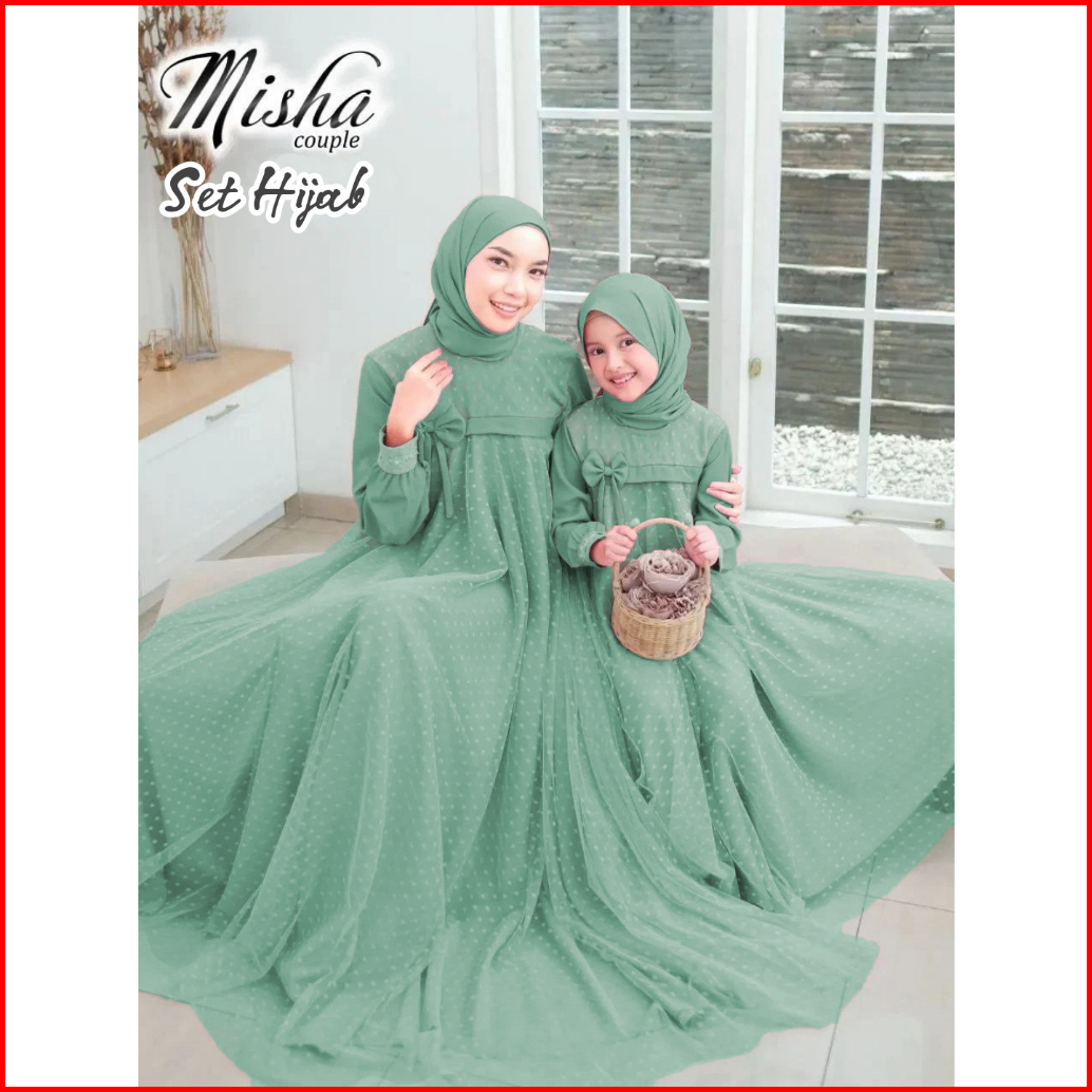 Baju Gamis Couple Mom And Kids Dress Ibu Dan Anak Couple Gaun Crinkle Airflow Mix Tile Dot