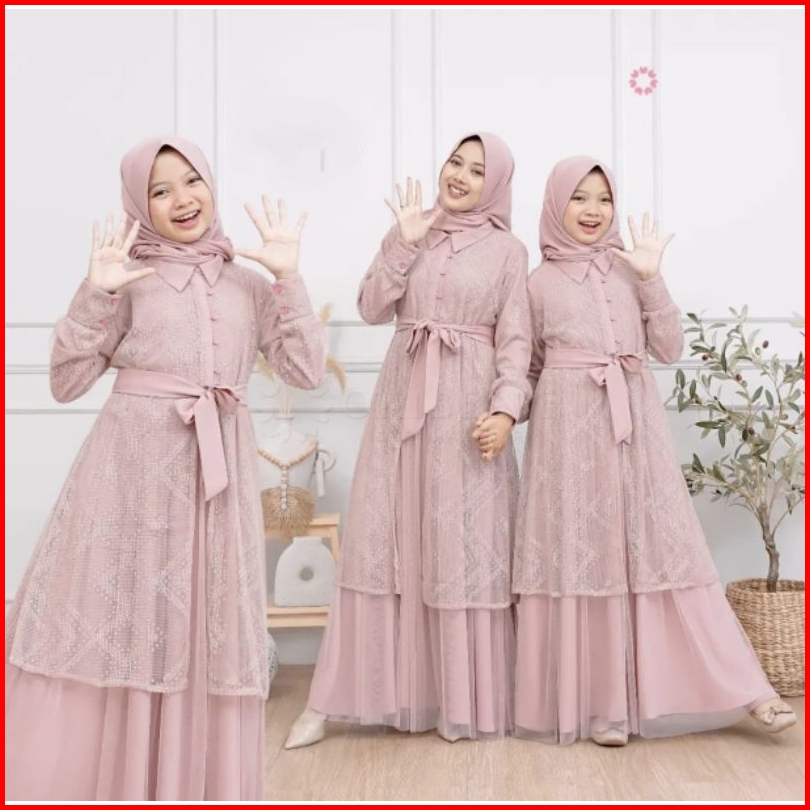 Gamis Anak Perempuan Usia 10-11-12-13-14-15 Tahun Padma Syari Kids Bahan Crinkle Airflow Mix Brukat