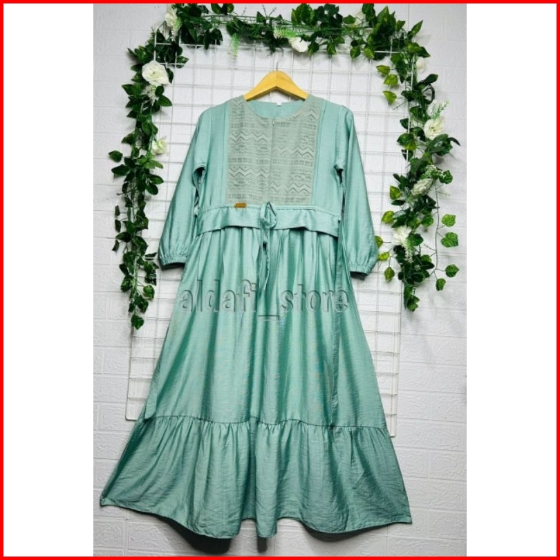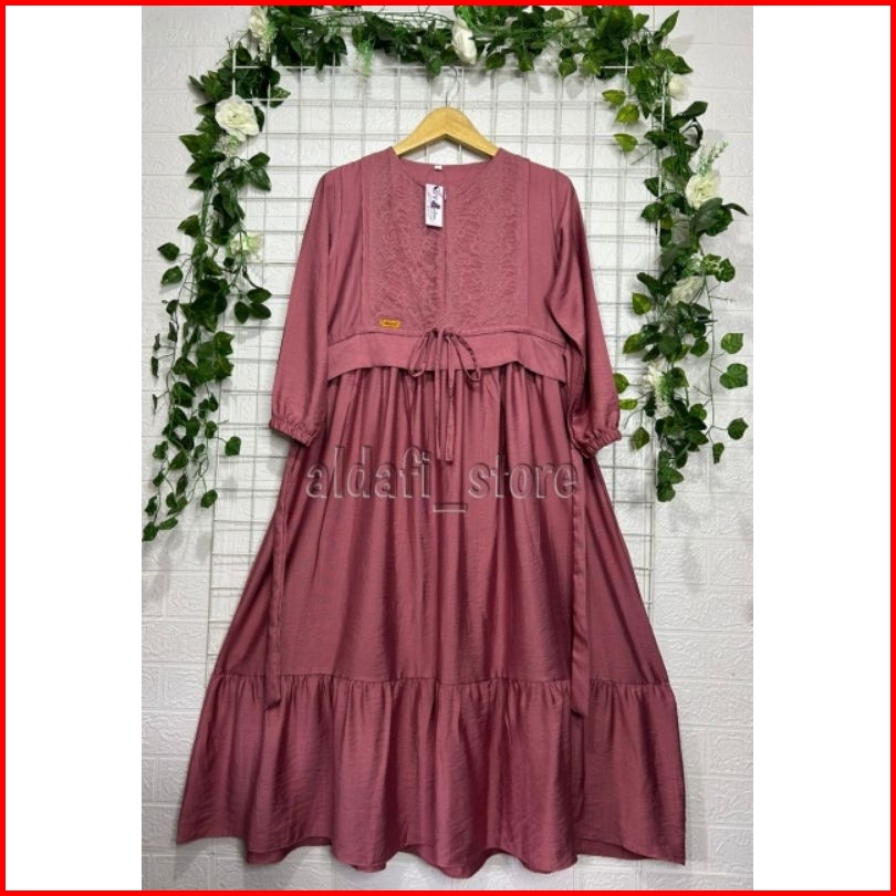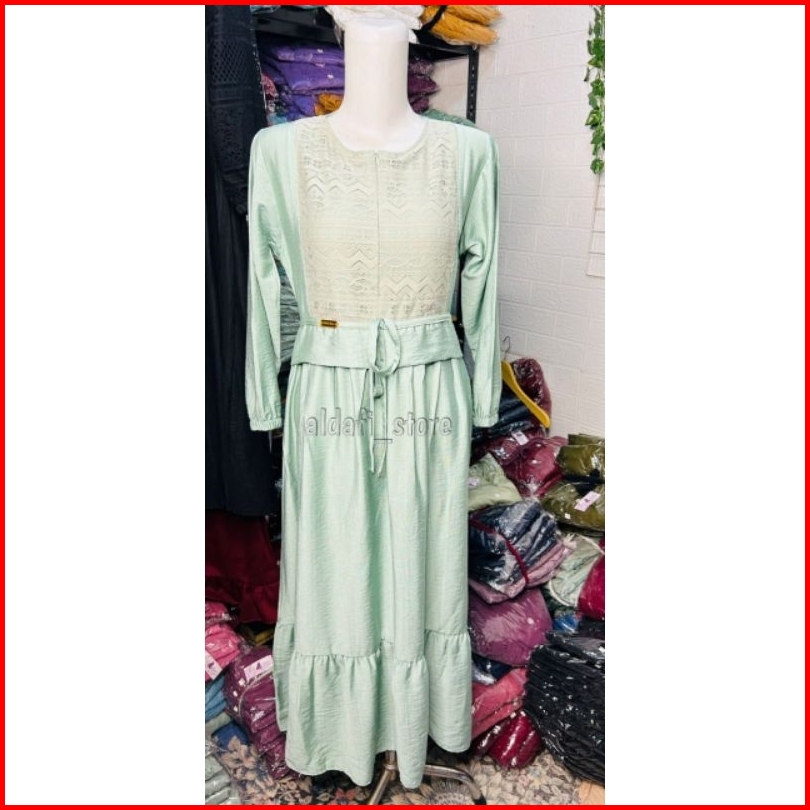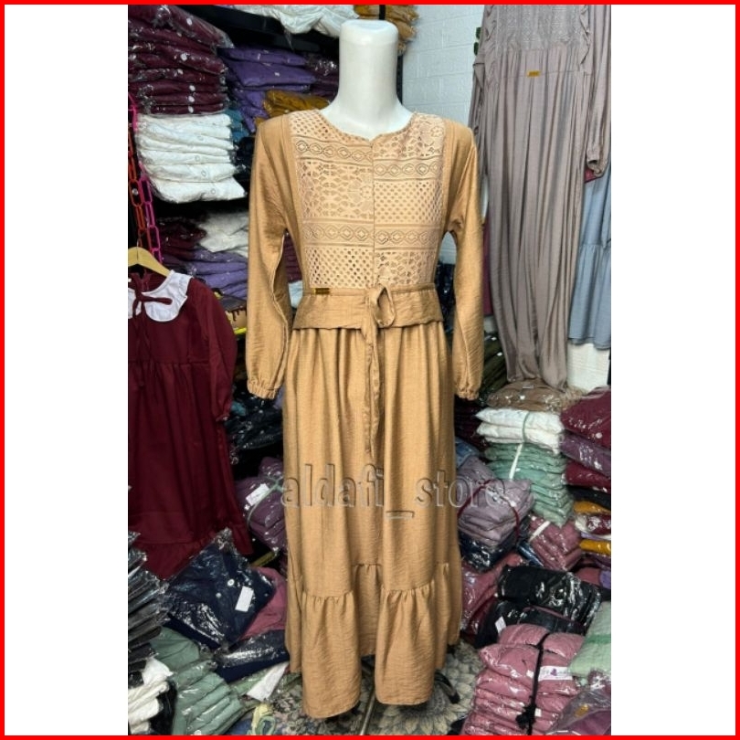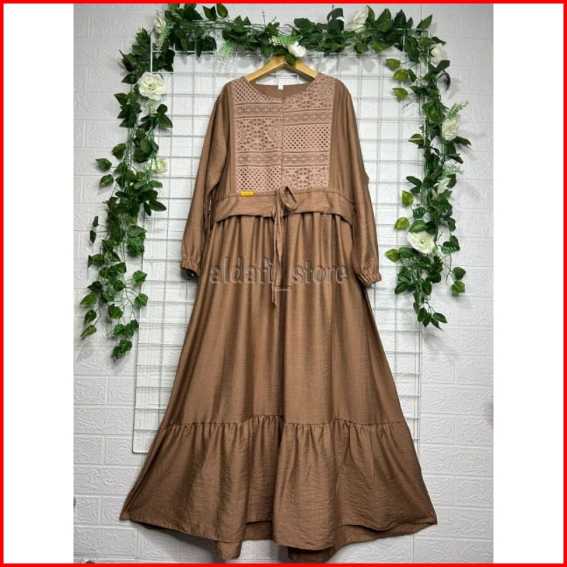 Syakira Dress Linen Brukat Premium Gamis Muslim Anak Tanggung Terbaru Dress Mewah Kekinian