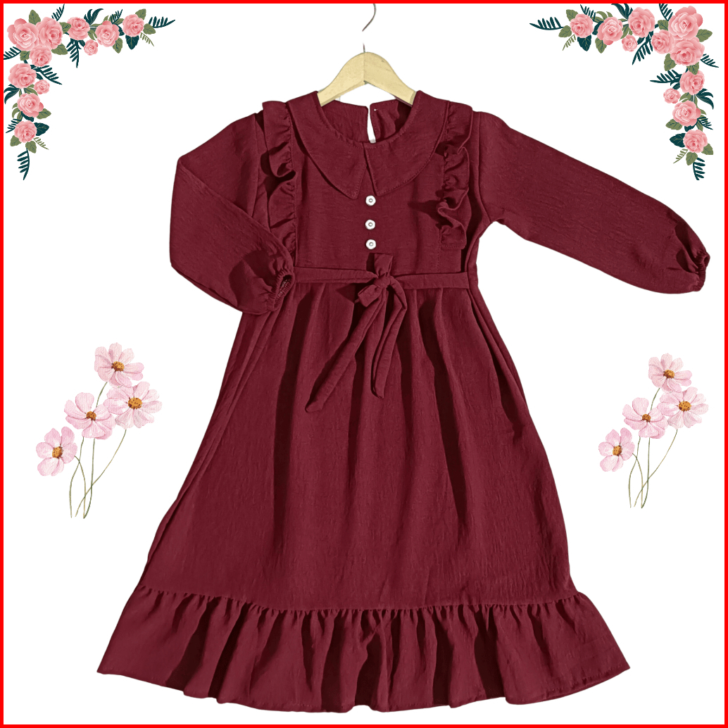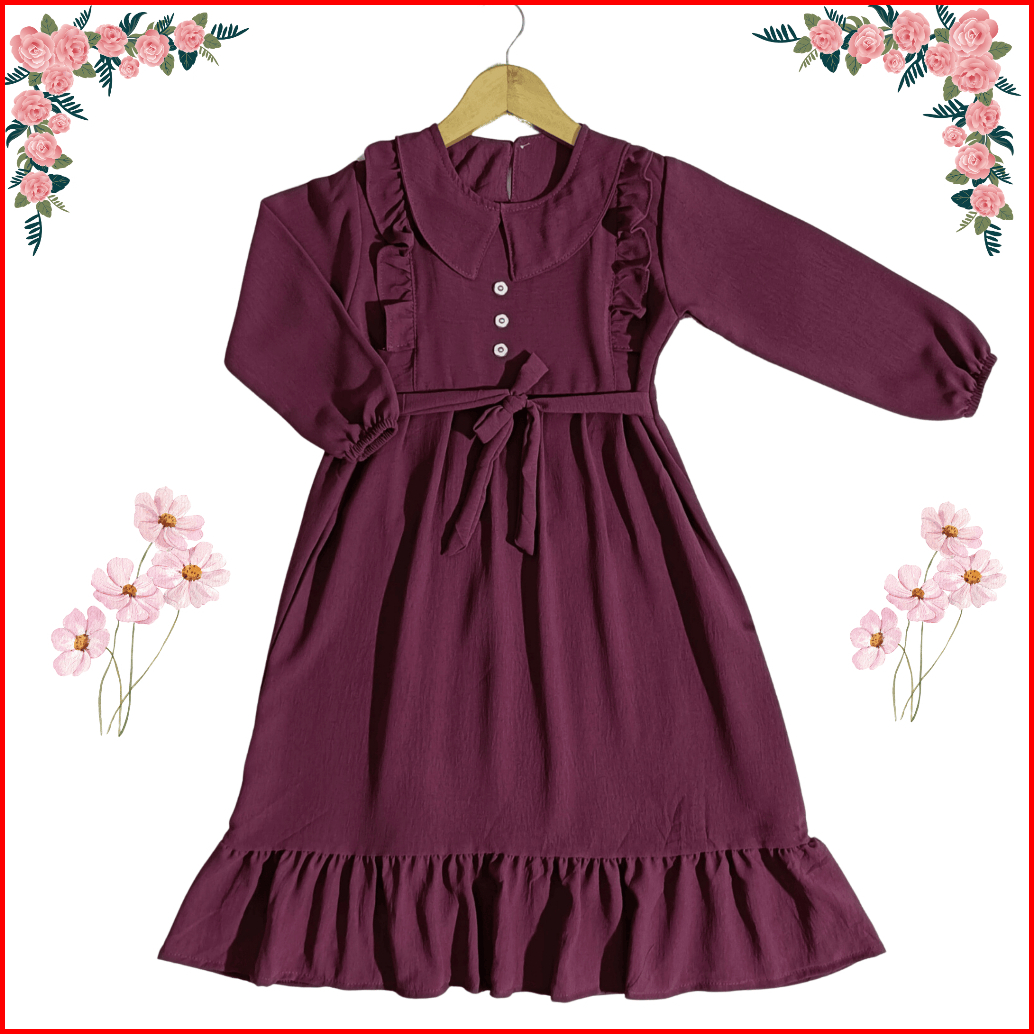 Gamis Anak Alifa Free Hijab Random Terbaru Anak Perempuan Usia 1-9 Tahun Bahan Crenkle