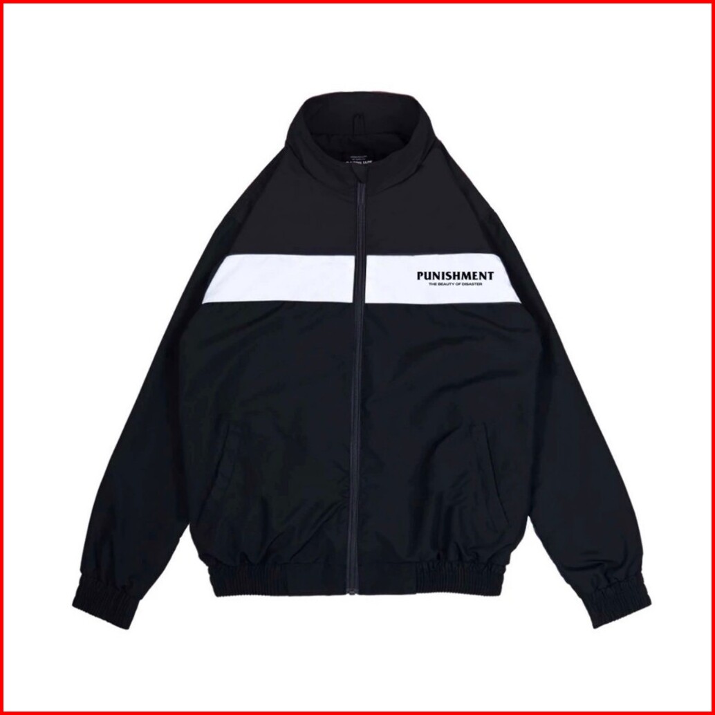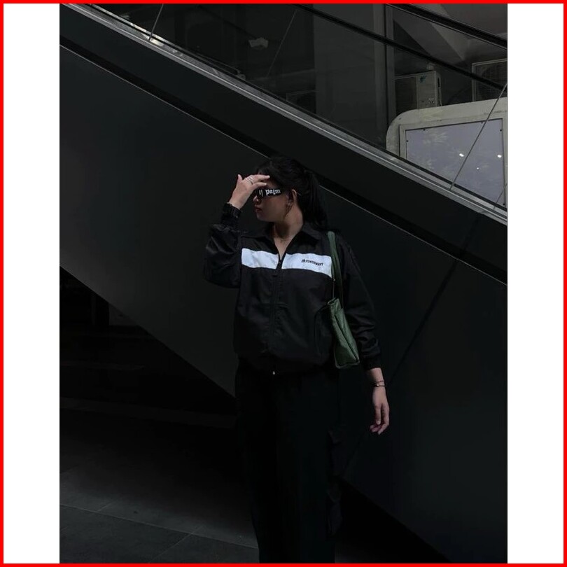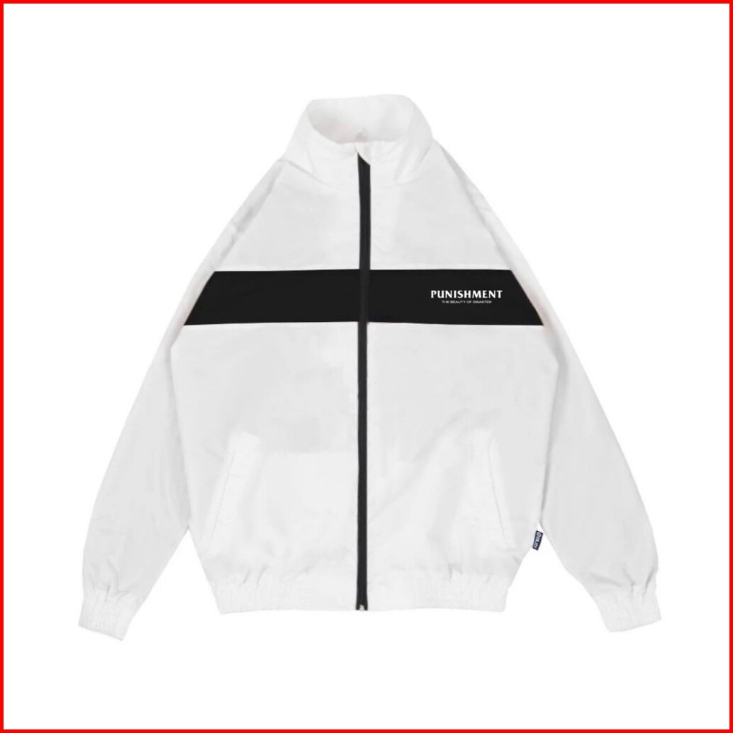 Jaket Track Suit Tractop Pria Wanita Jacket Cowok Windbrakers Premium Distro Hitam Lis Putih