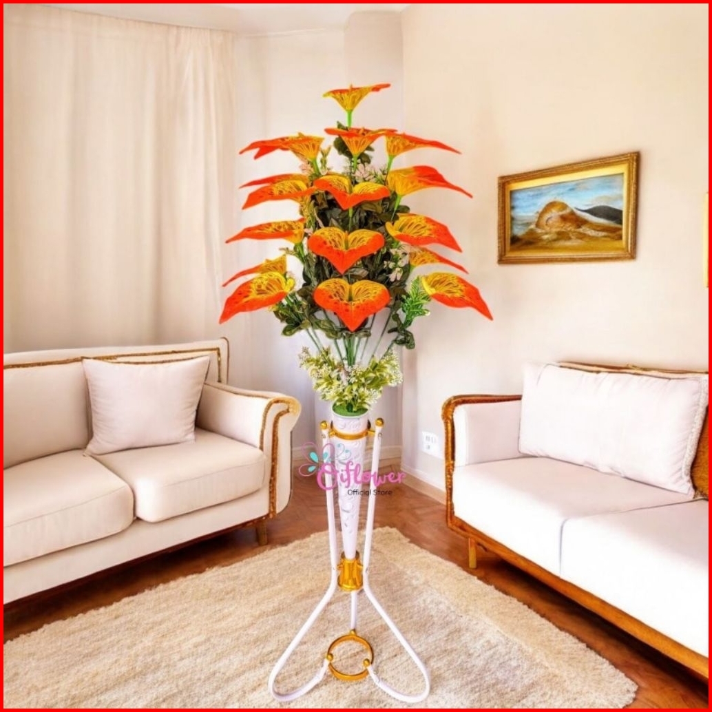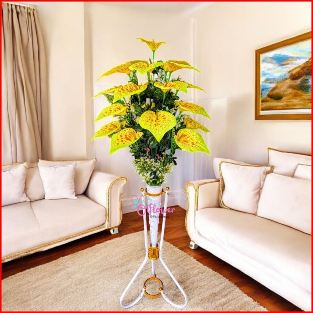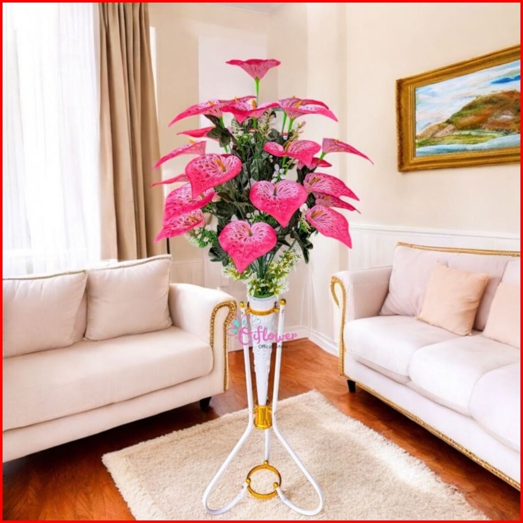Bunga Hias Anthurium Panda 18.kuntum Satu Set Lengkap Dengan Vas Standing Besi Hiasan Dekorasi Sudut Ruangan