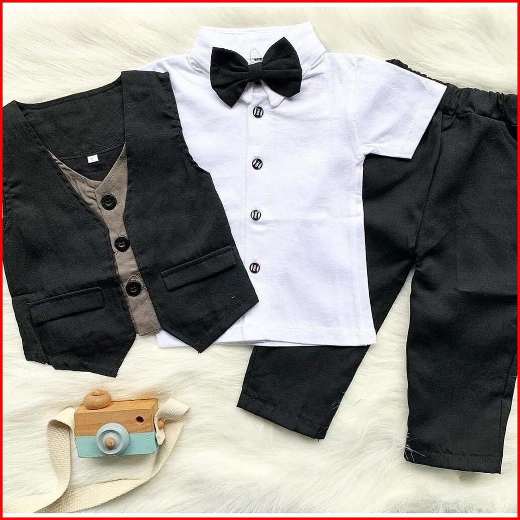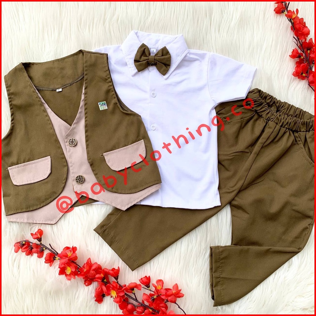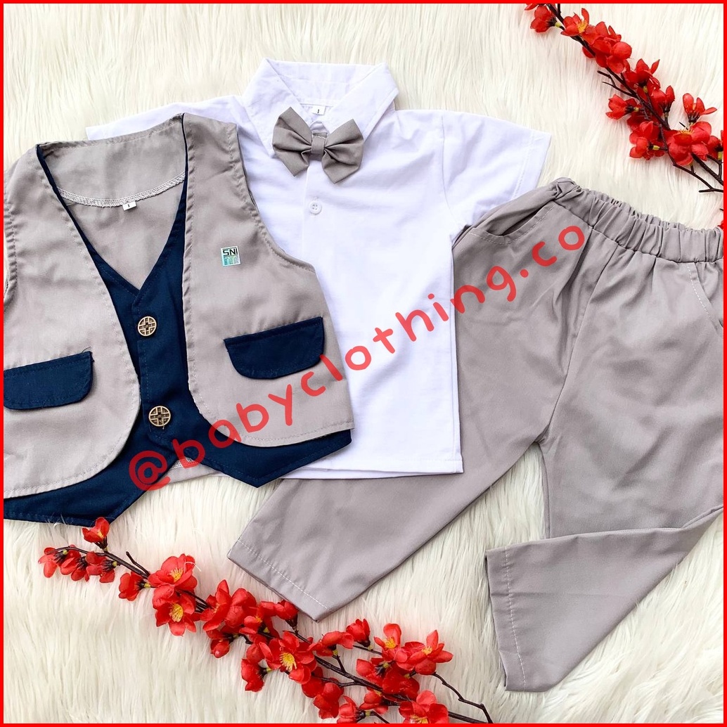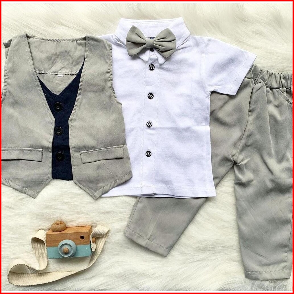 Baju Setelan Kemeja Rompi Celana Pergi Jalan Kekinian Fashion Anak Laki-laki Cowok Murah -sam