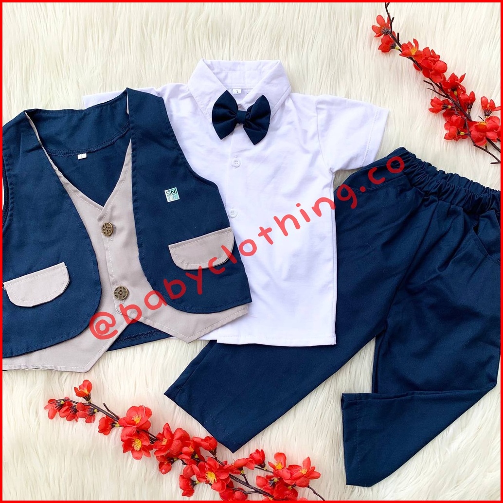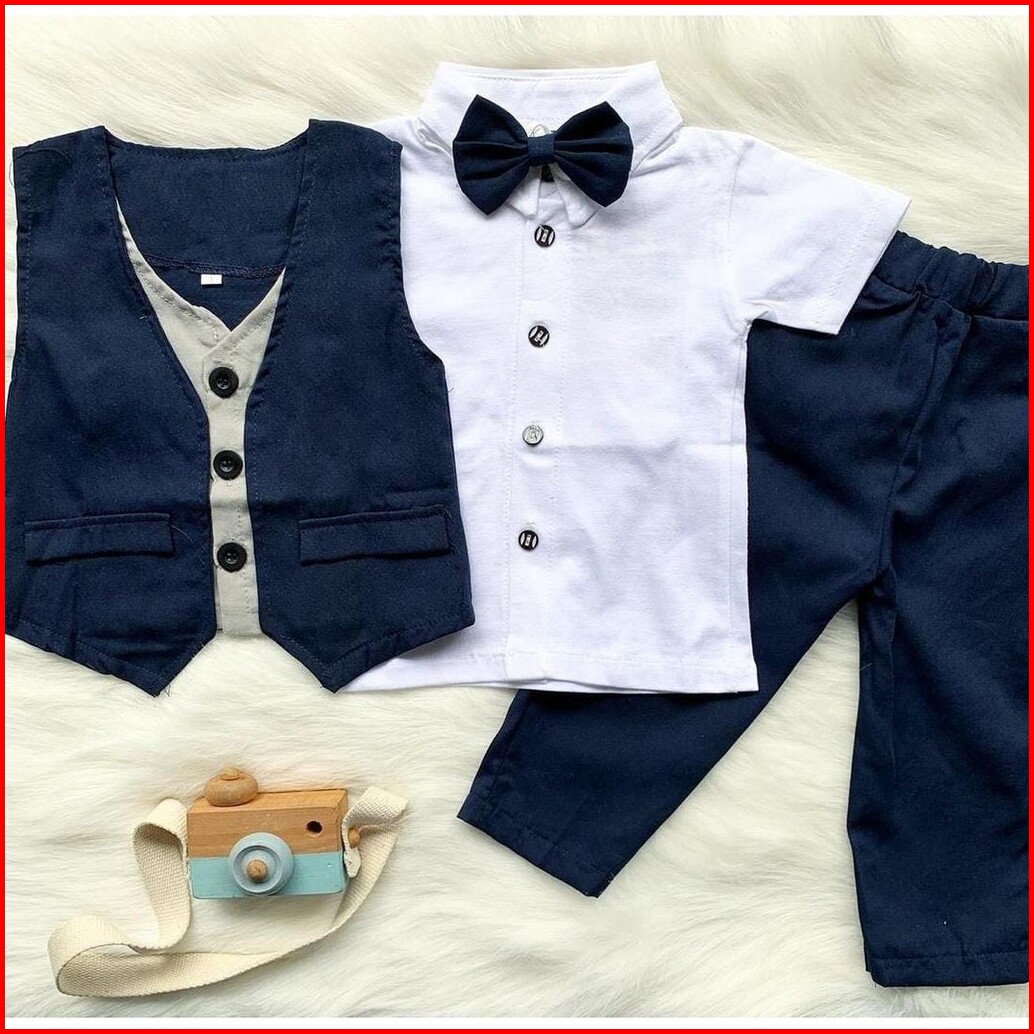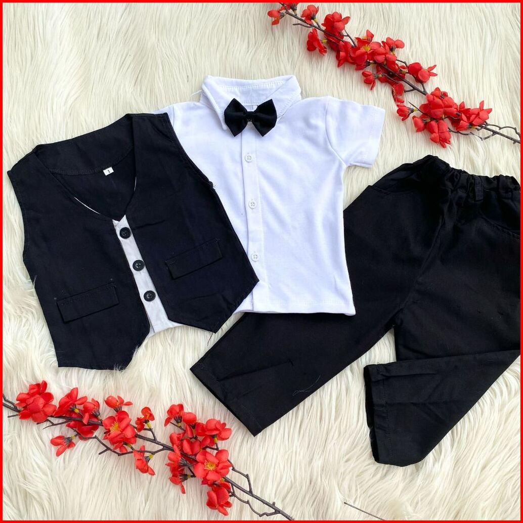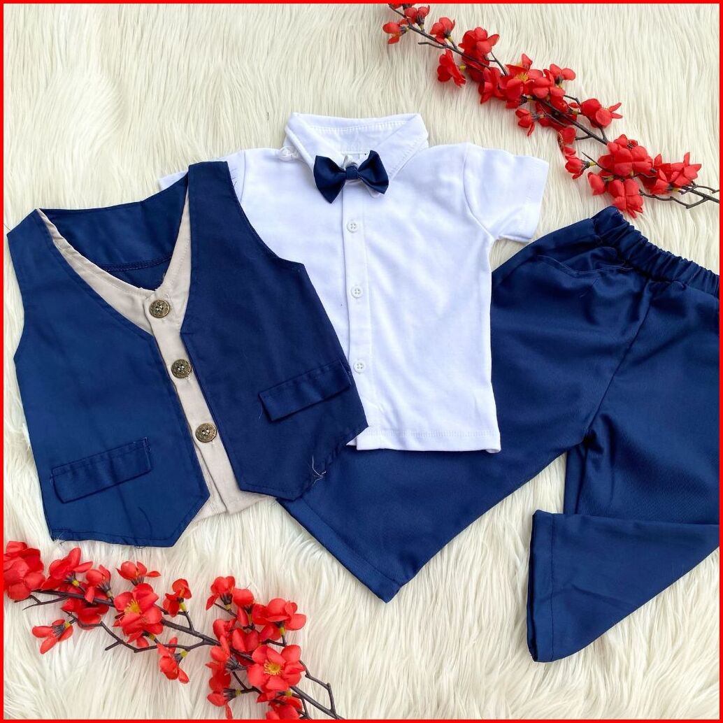 Baju Setelan Kemeja Rompi Celana Pergi Jalan Kekinian Fashion Anak Laki-laki Cowok Murah -sam
