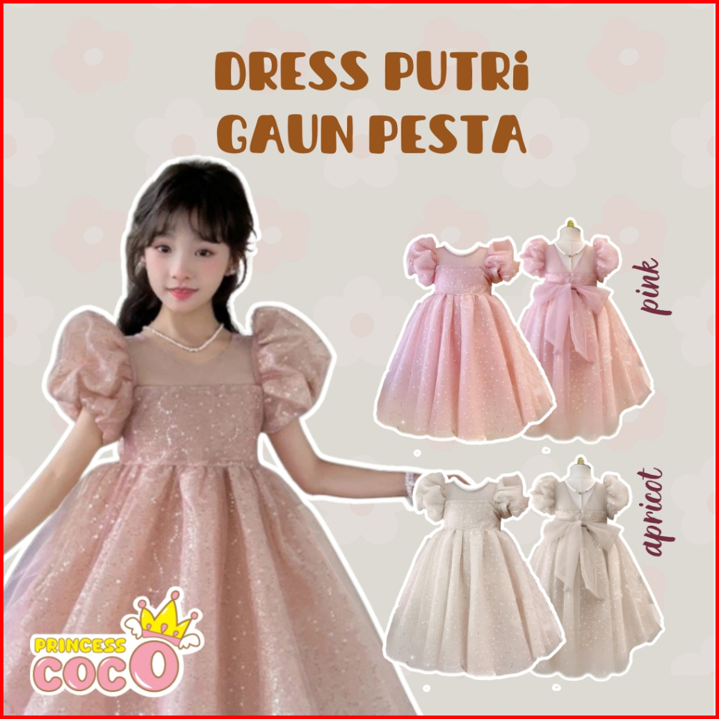 Princess Coco 1-10 Tahun Dress Pesta Magenta Bando Anak Perempuan Gaun Pita Party Ulang Tahun