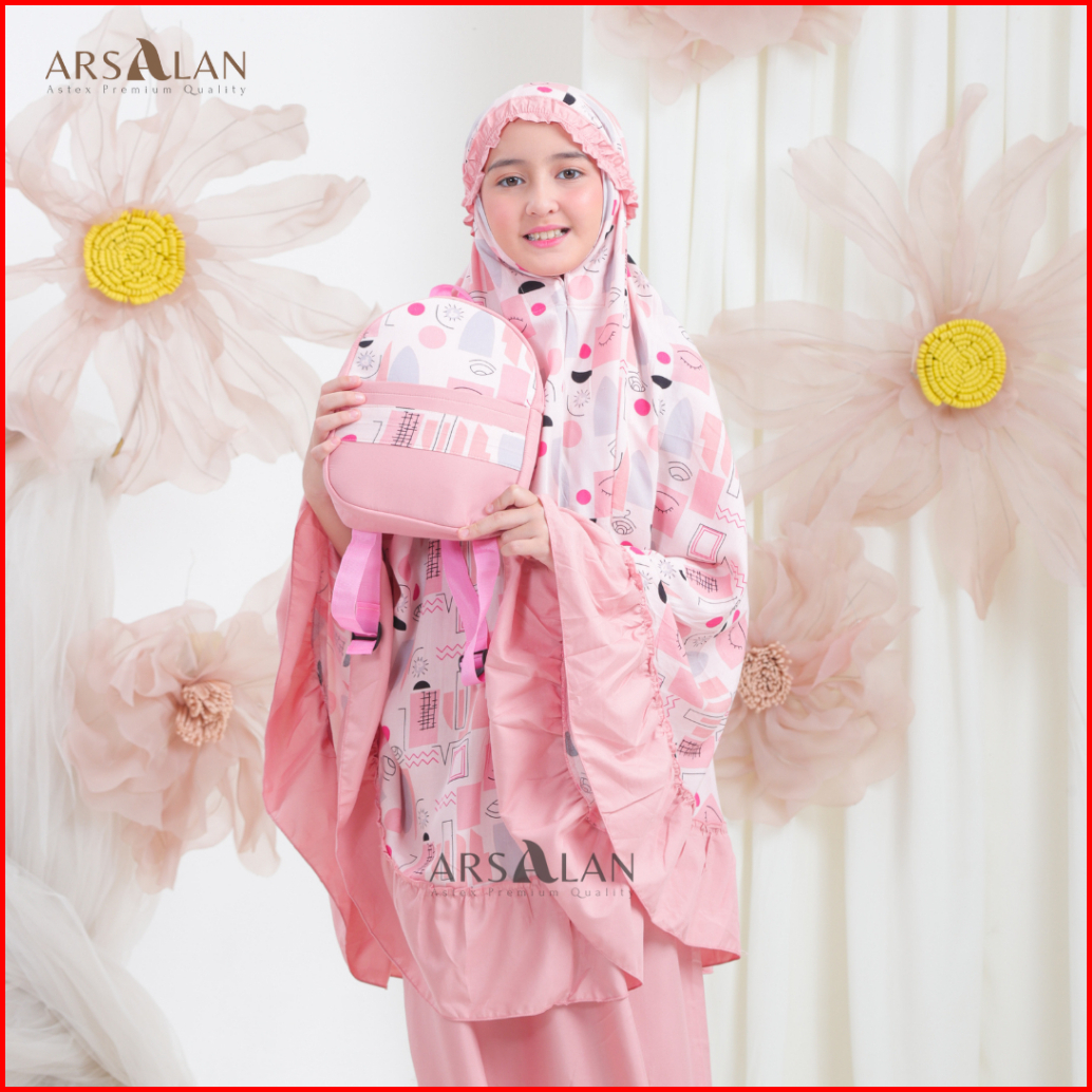 Arsalan - Mukena Anak Tas Ransel Couple Mukena Dewasa Rayon Premium Motif Queena Series Usia 2 - 12 Tahun