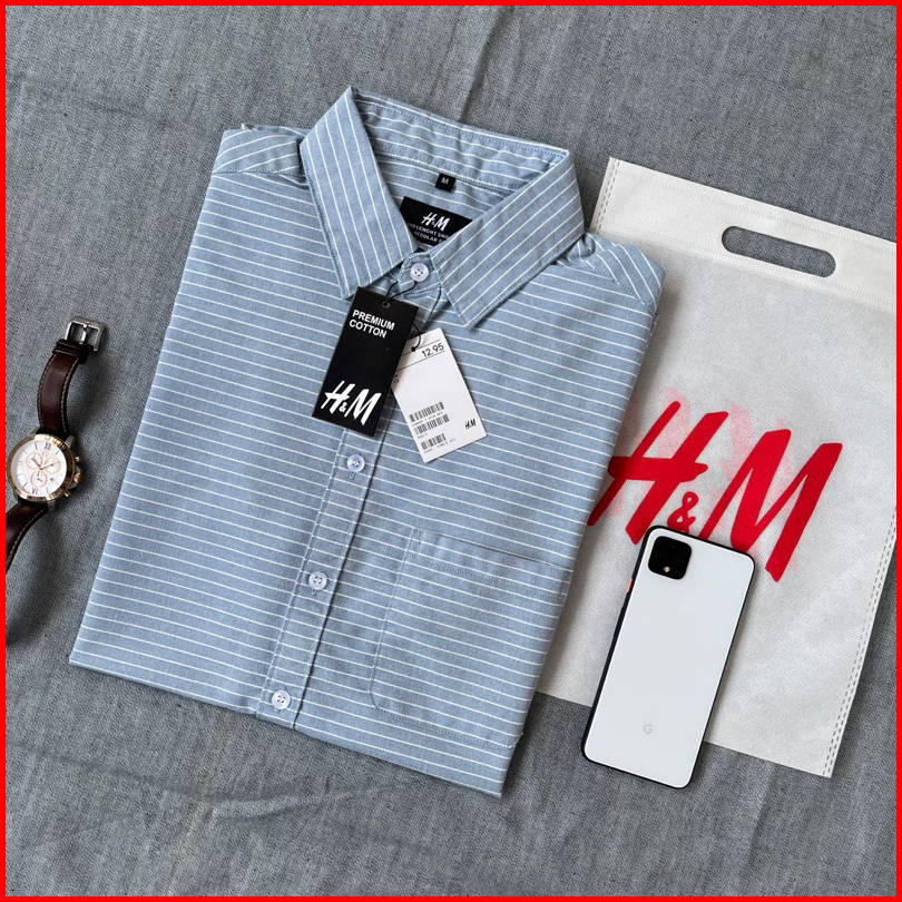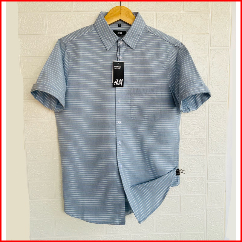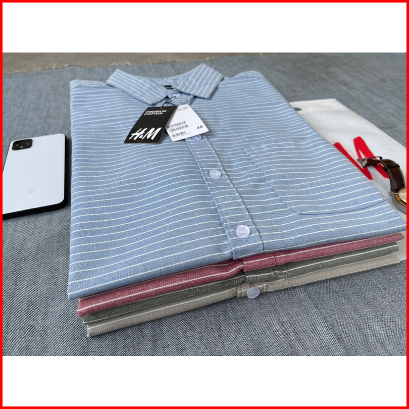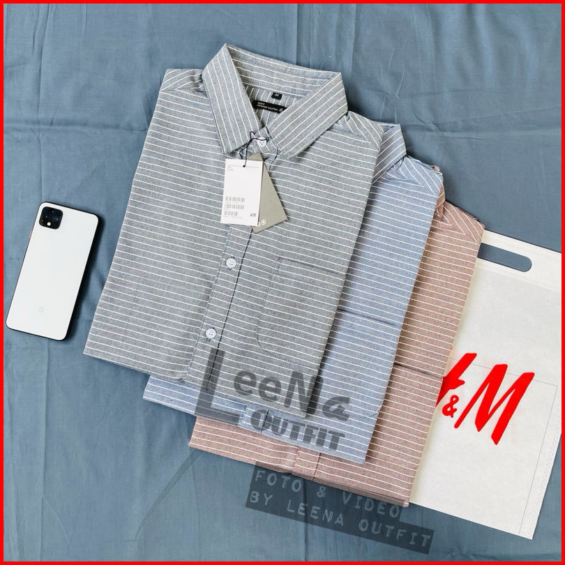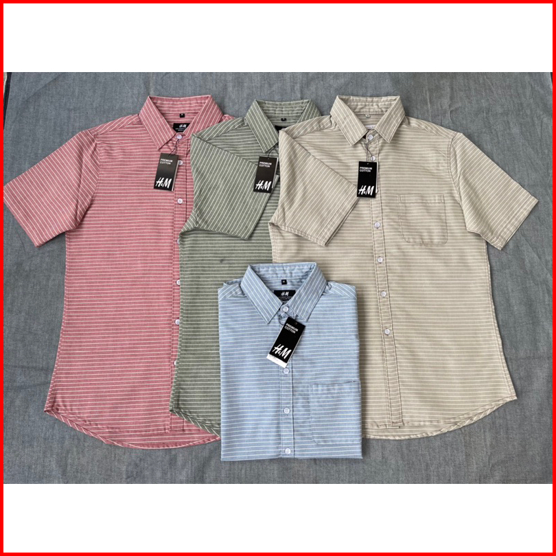 Kemeja Lengan Pendek Salur Garis Hm Kemeja Pria Salur Oxford Premium