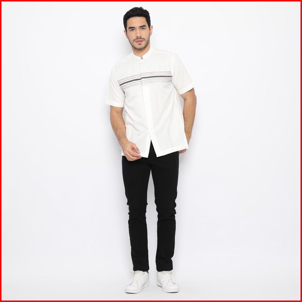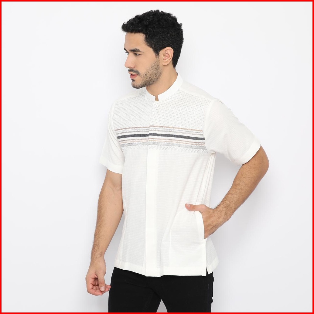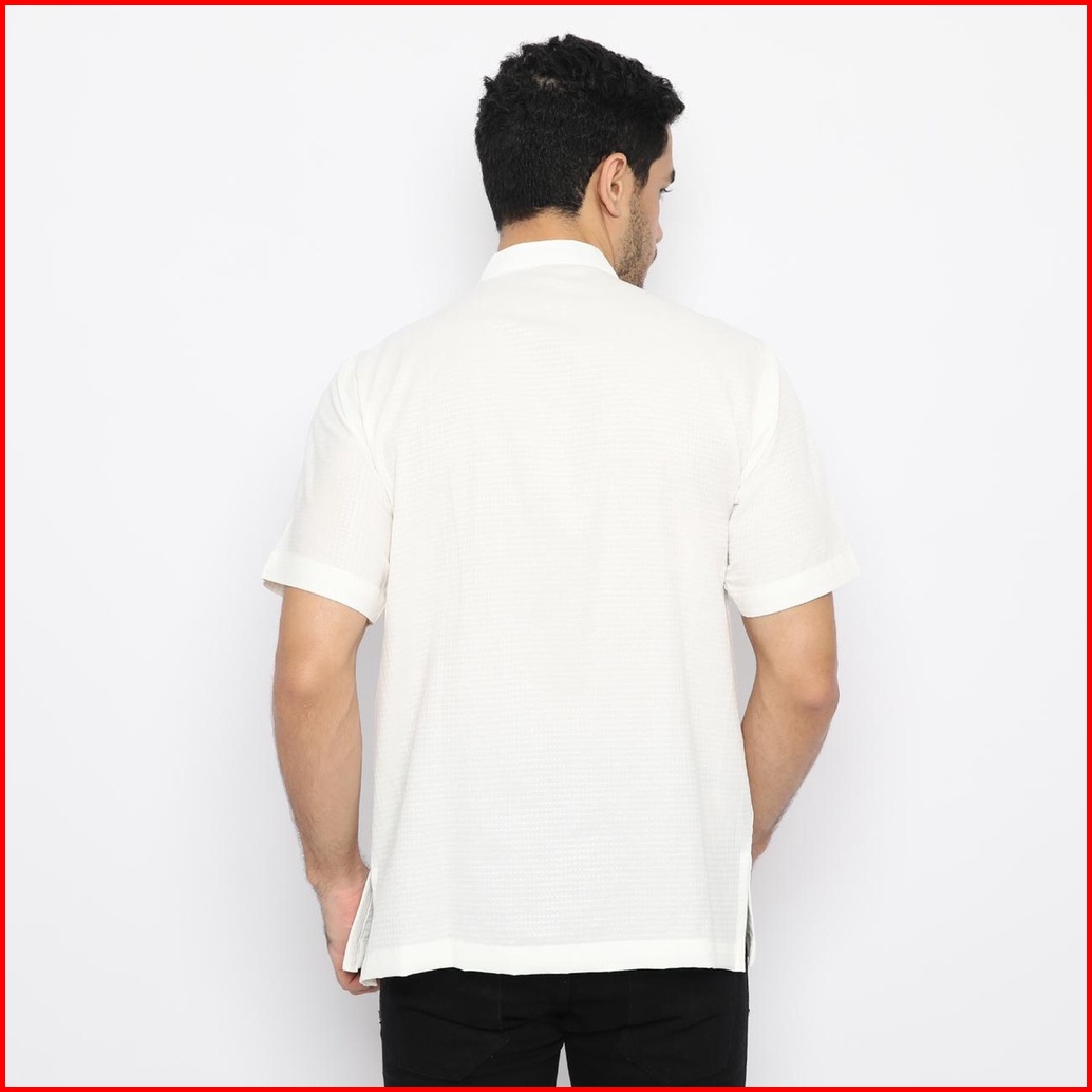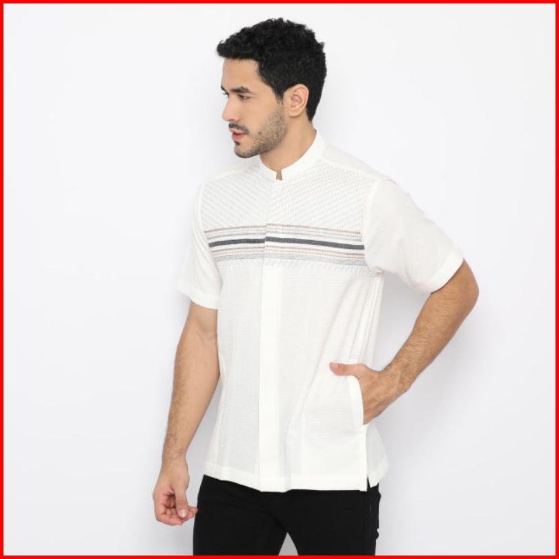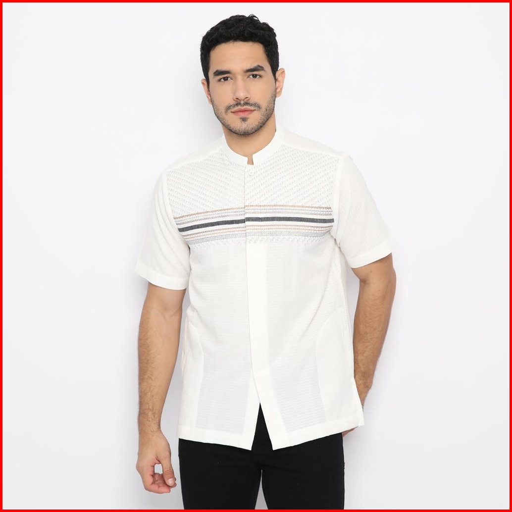 Baju Koko Lengan Pendek Putih Tulang Kemeja Koko Muslim Bordir Wuk06