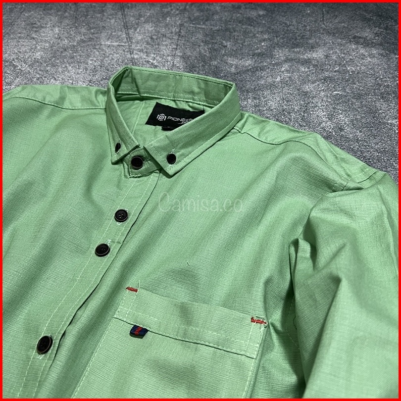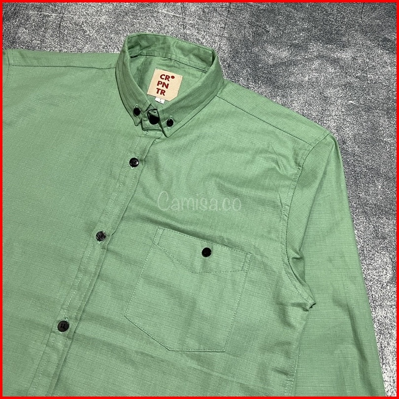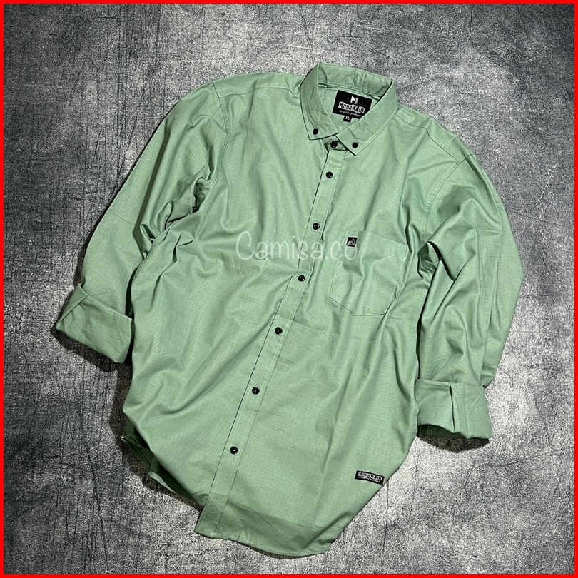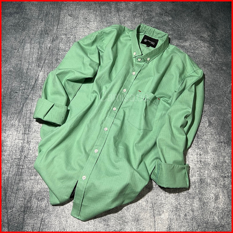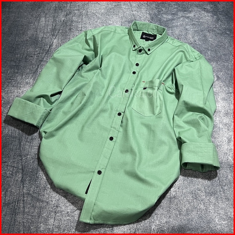 Kemeja Pria Sage Green Polos Cotton Cigaret Lengan Panjang Premium Hem Pria Panjang Polos Sage Green Pakaian Pria Kemeja