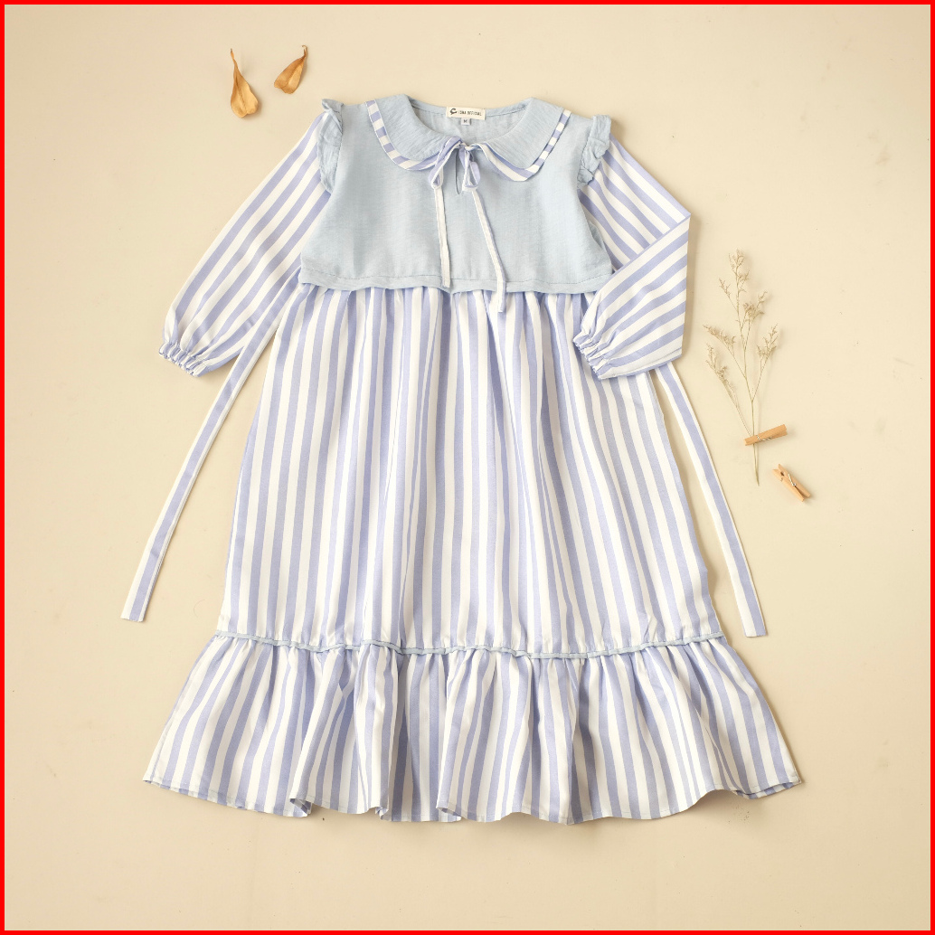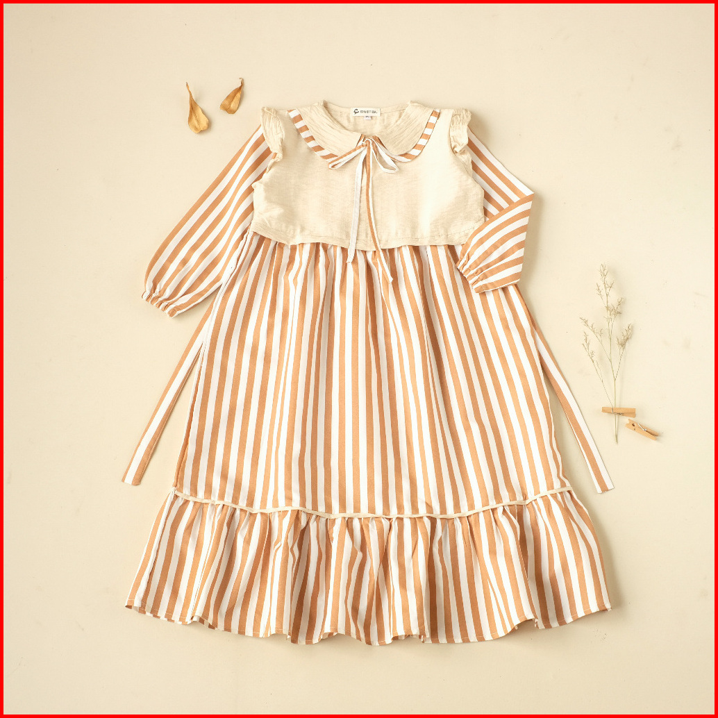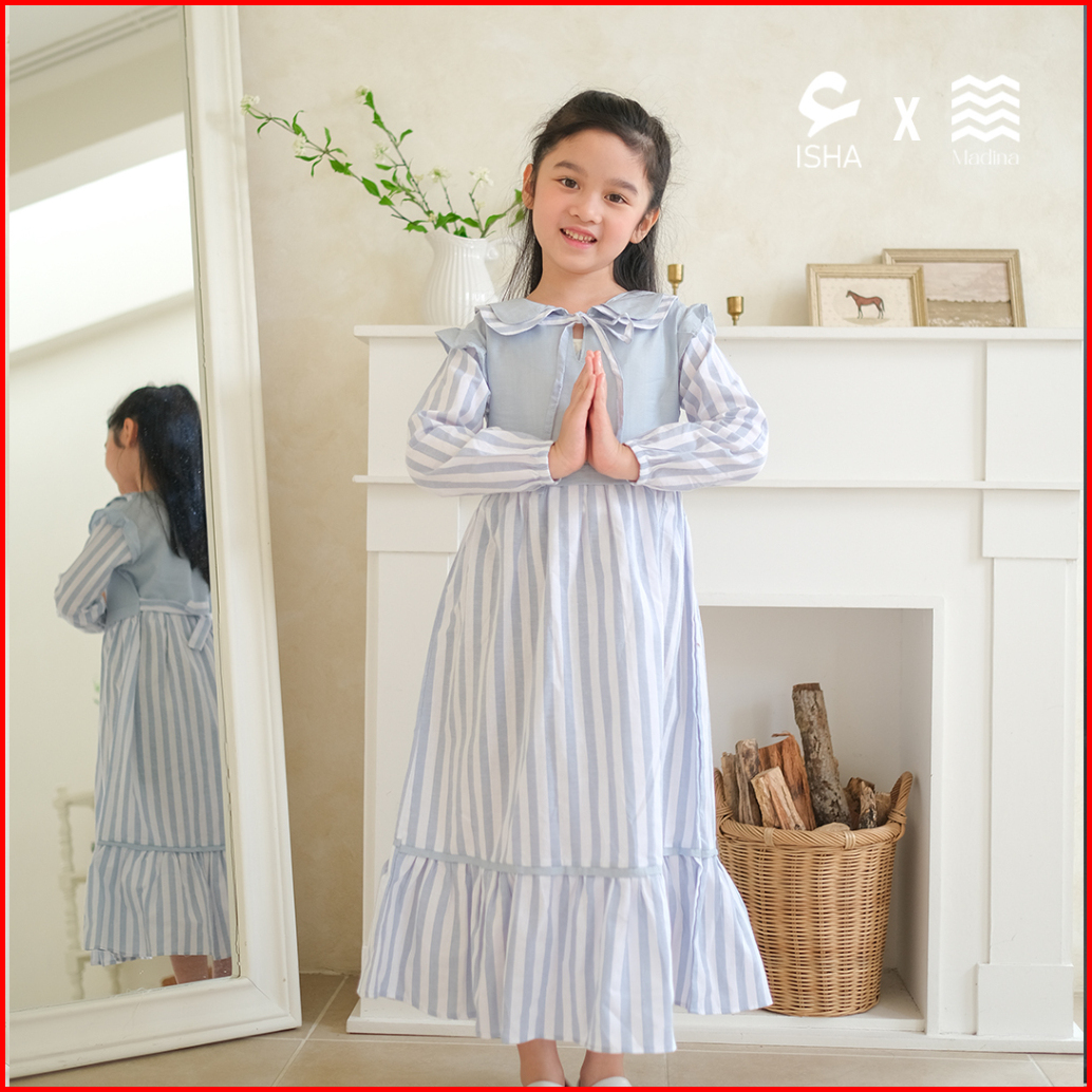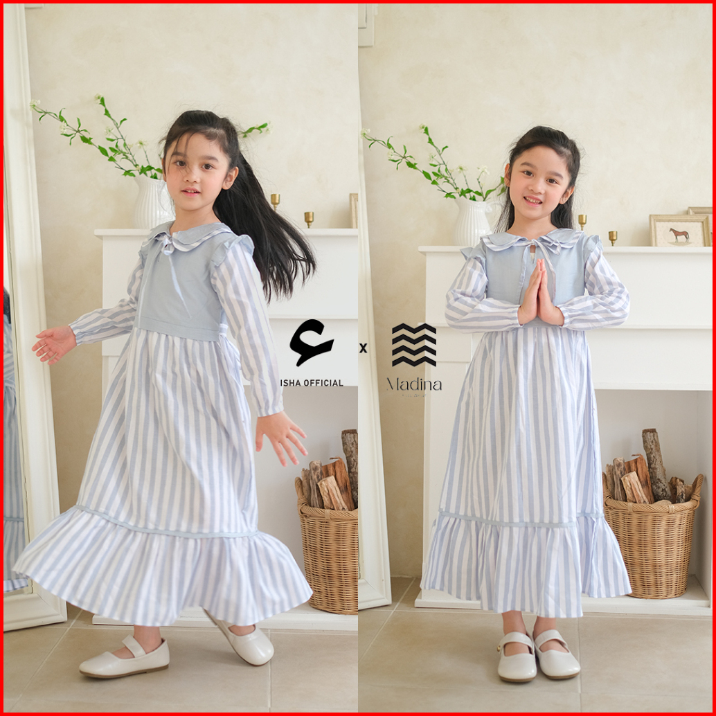 Madina Kids - Gamis Anak Perempuan 2-12 Tahun Lengan Panjang Motif Salur Baju Dress Anak Garis-garis
